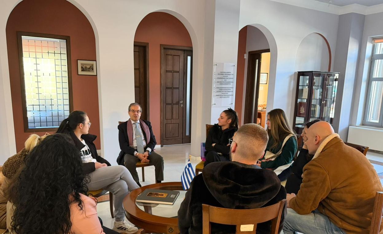 Εκπαιδευτική επίσκεψη φοιτητών και φοιτητριών Πολιτικών Επιστημών του Πανεπιστημίου Fan Noli στο Γενικό Προξενείο της Ελλάδας στην Κορυτσά (11/3/2026)