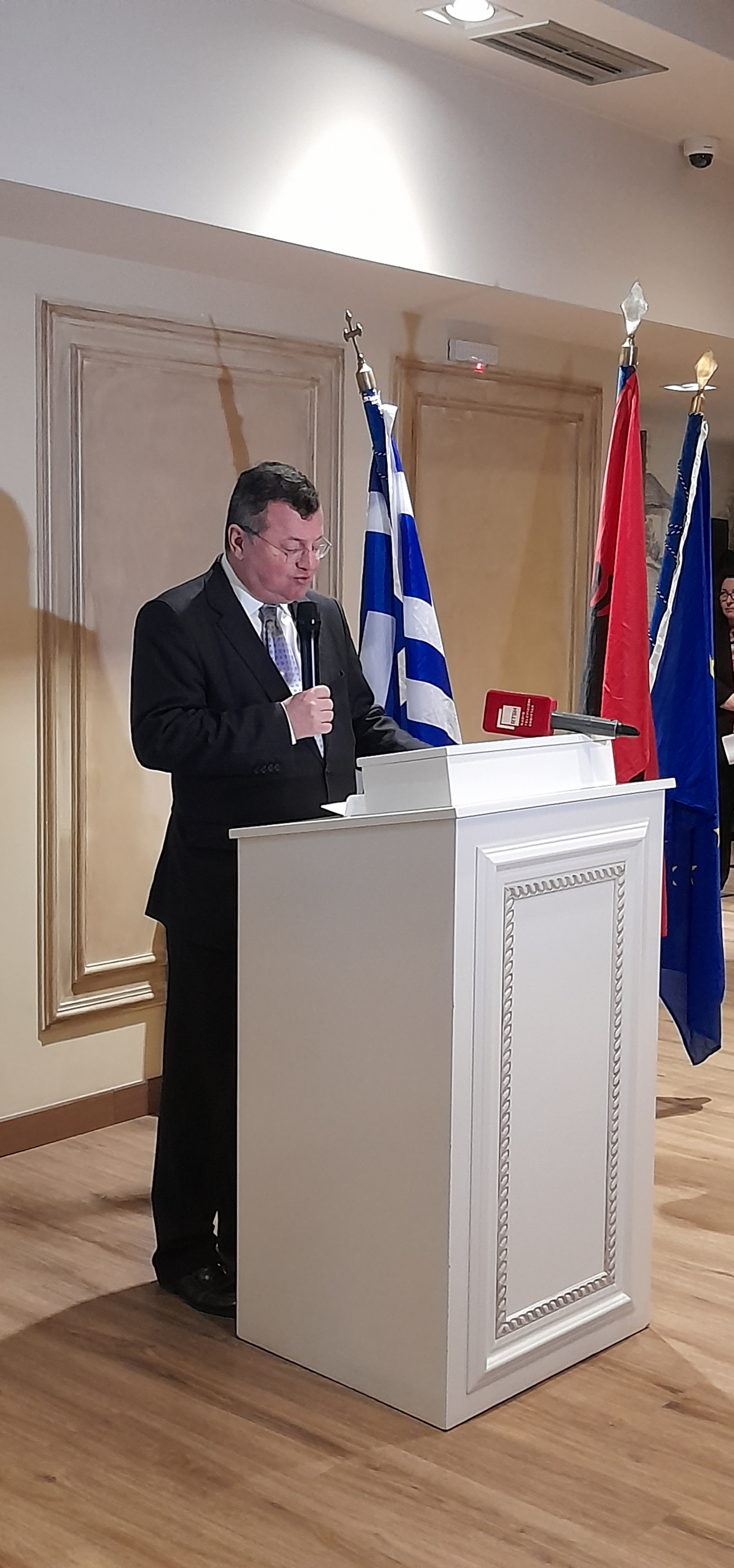 Επ’ ευκαιρία της εθνικής επετείου της 25ης Μαρτίου, ο Γενικός Πρόξενος της Ελλάδος στην Κορυτσά κ. Νικόλαος Γιωτόπουλος και η σύζυγός του παρέστησαν την Κυριακή 23.03.2025 σε δοξολογία στον καθεδρικό ναό της πόλης, όπου επίσης παρευρέθησαν βουλευτές του ελληνικού και αλβανικού κοινοβουλίου. Ακολούθησε δεξίωση σε κεντρικό ξενοδοχείο της πόλης, όπου πλην των ανωτέρω παρευρέθησαν ο νέος Αρχιεπίσκοπος Τιράνων, Δυρραχίου και πάσης Αλβανίας κ.κ. Ιωάννης και σύμπασα η Ιερά Σύνοδος της Αυτοκεφάλου Εκκλησίας της Αλβανίας, ο Δήμαρχος Κορυτσάς κ. Sotiraq Filo καθώς και πλήθος εντοπίων επισήμων, καθώς και ομογενών.