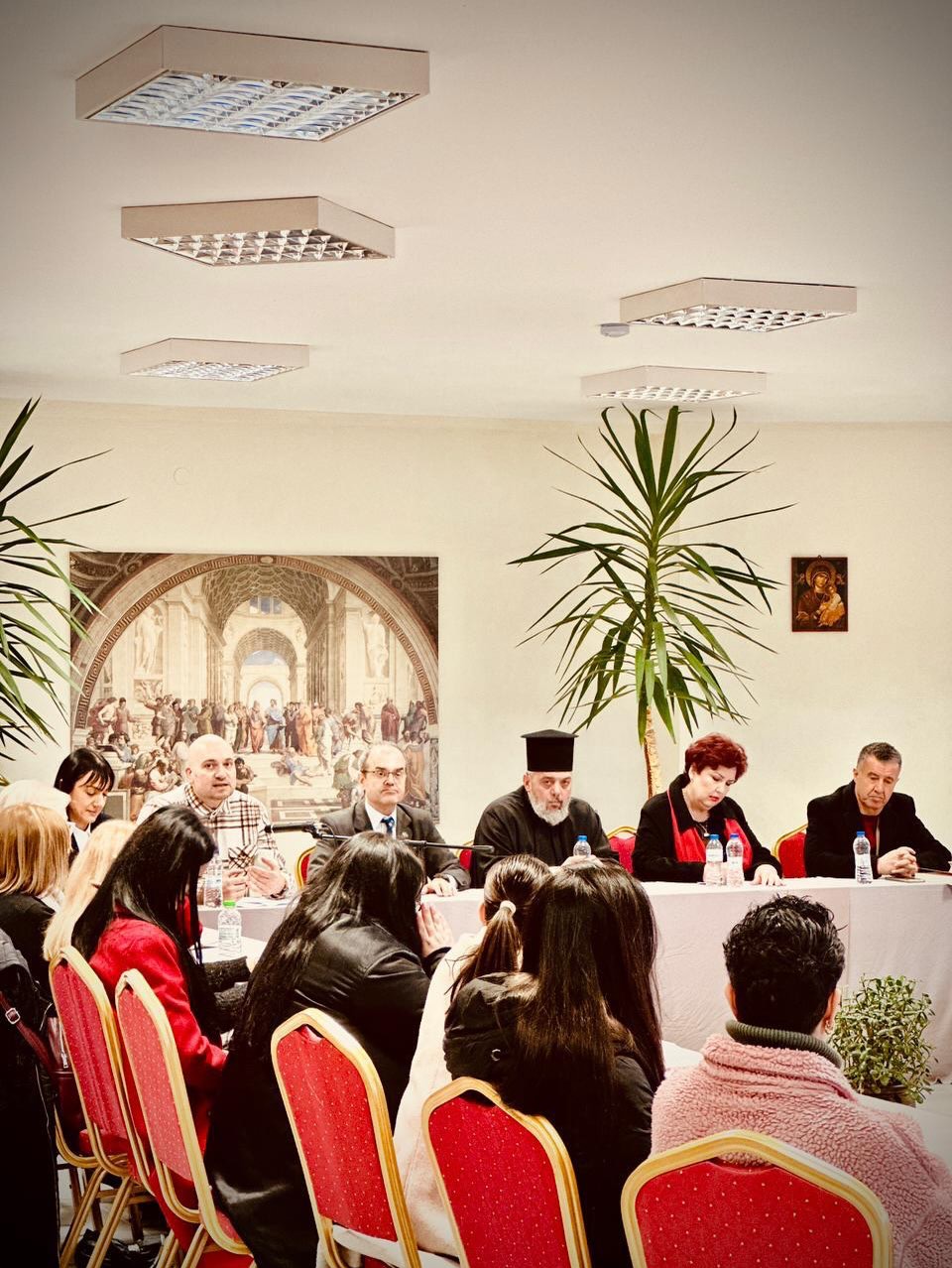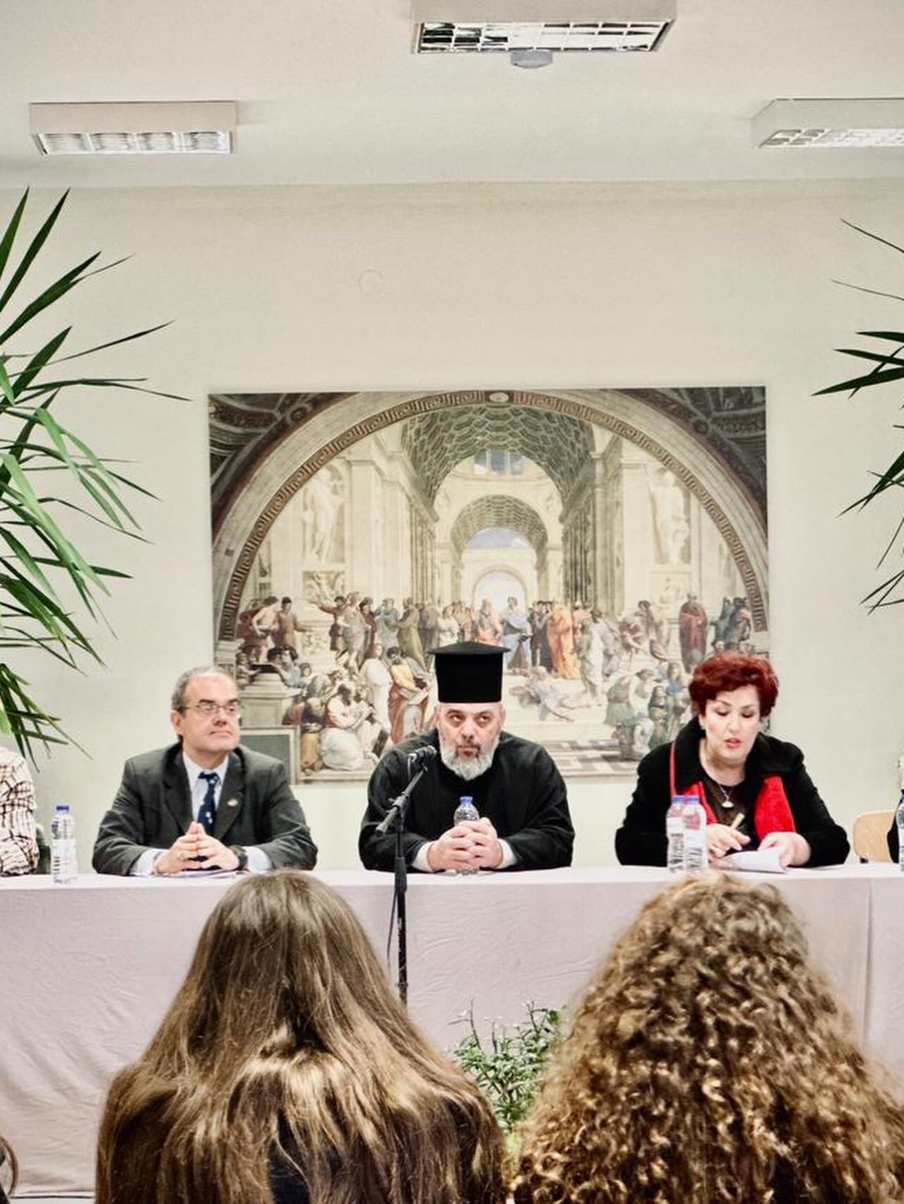 Στη συνέχεια, κατά την ίδια ημέρα, πραγματοποιήθηκε εκδήλωση υπό μορφήν ημερίδας, στο Λύκειο «Πλάτων», με θέμα «Η επίδραση της ελληνικής γλώσσας στον ευρωπαϊκό πολιτισμό και την ιστορία: το παρελθόν και το παρόν». Ο Γενικός Πρόξενος κ. Αστέριος Μπουζιάς απηύθυνε σύντομο χαιρετισμό στην εκδήλωση και στη συνέχεια, απήντησε σε ερωτήσεις των μαθητών.