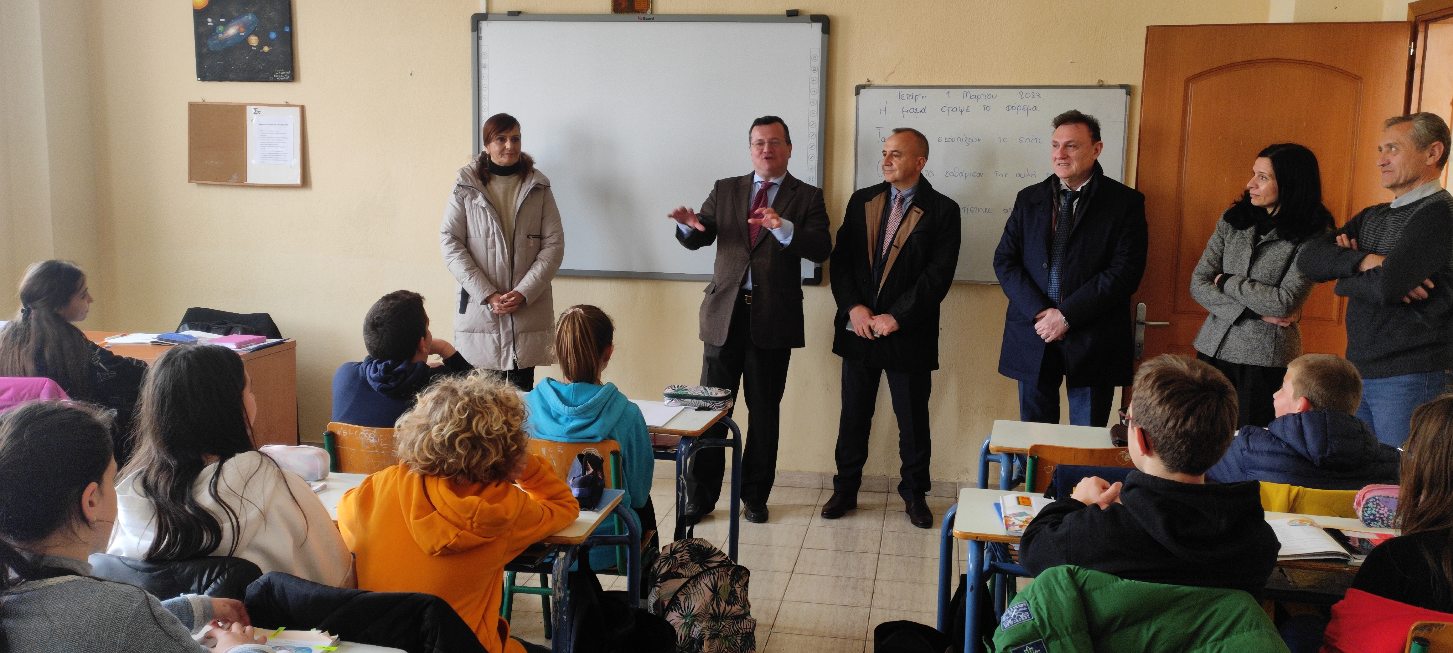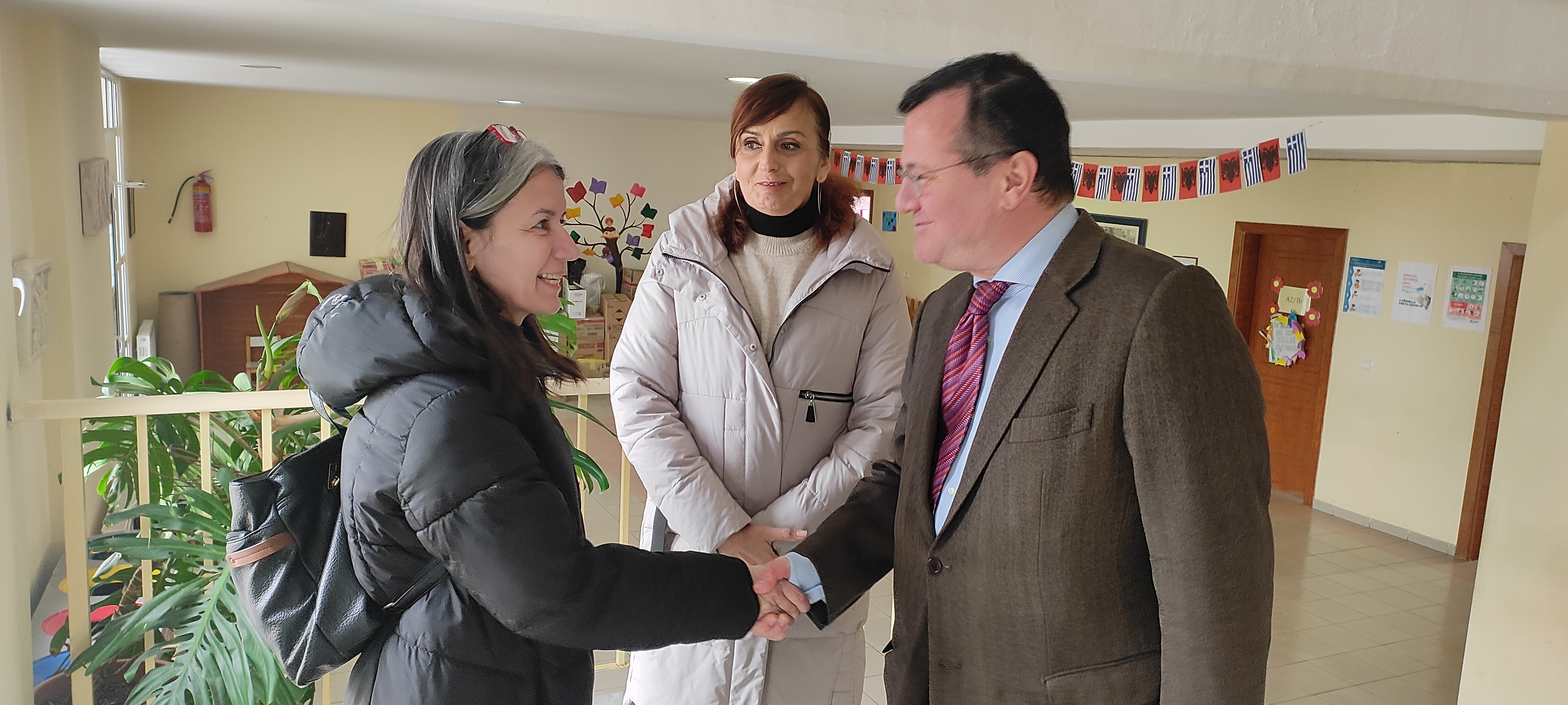 Ο Γενικός Πρόξενος της Ελλάδος στην Κορυτσά κ. Νικόλαος Γιωτόπουλος, Σύμβουλος Πρεσβείας Α΄, συνοδευόμενος από την Αναπληρώτρια Συντονίστρια Εκπαίδευσης της Ελλάδος στην Αλβανία κα Δήμητρα Βασιλείου, πραγματοποίησε την Τετάρτη, 01.03.2023, επίσκεψη στα ελληνο-αλβανικά εκπαιδευτήρια ΟΜΗΡΟΣ και ΠΛΑΤΩΝ στην Κορυτσά.