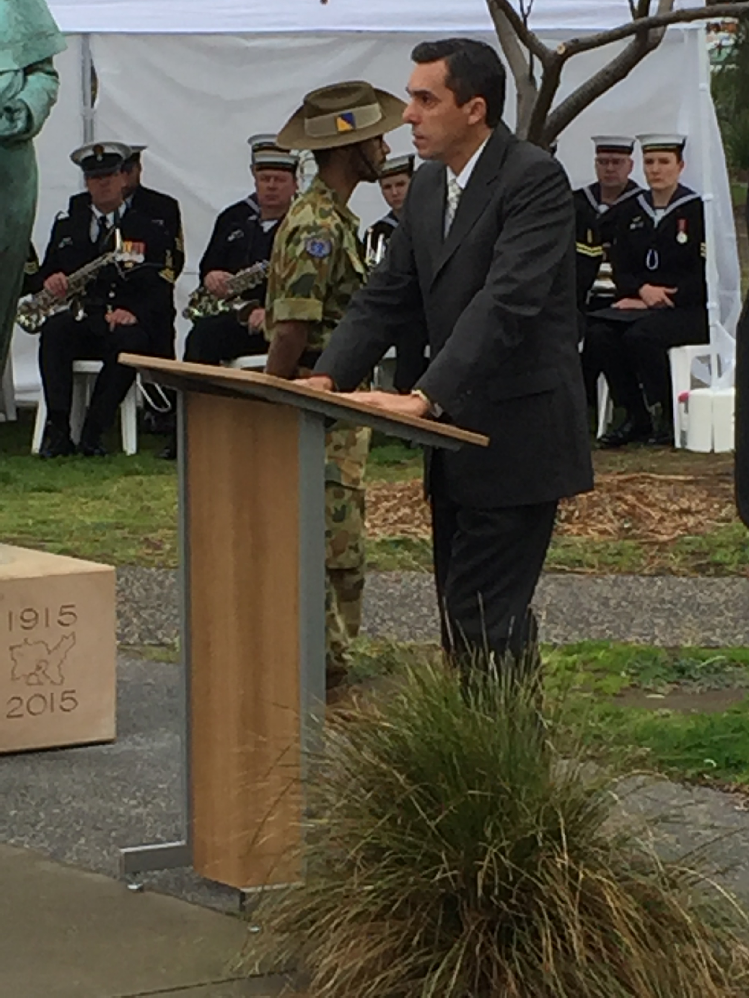 The annual commemorative service was held on 11 August at the Lemnos Gallipoli Memorial at Lemnos square, where the statue in honour of the hundreds of nurses who were deployed in the military hospitals in Lemnos was unveiled three years ago, and not far from Princes pier, where the Australian troops boarded the ships to Lemnos in 1915. The British Consul General delivered the keynote address, preceded by the Mayor of Port Philip, the state Minister for Housing, the President of the Legislative Council and the Greek Consul General who gave short introductory speeches.