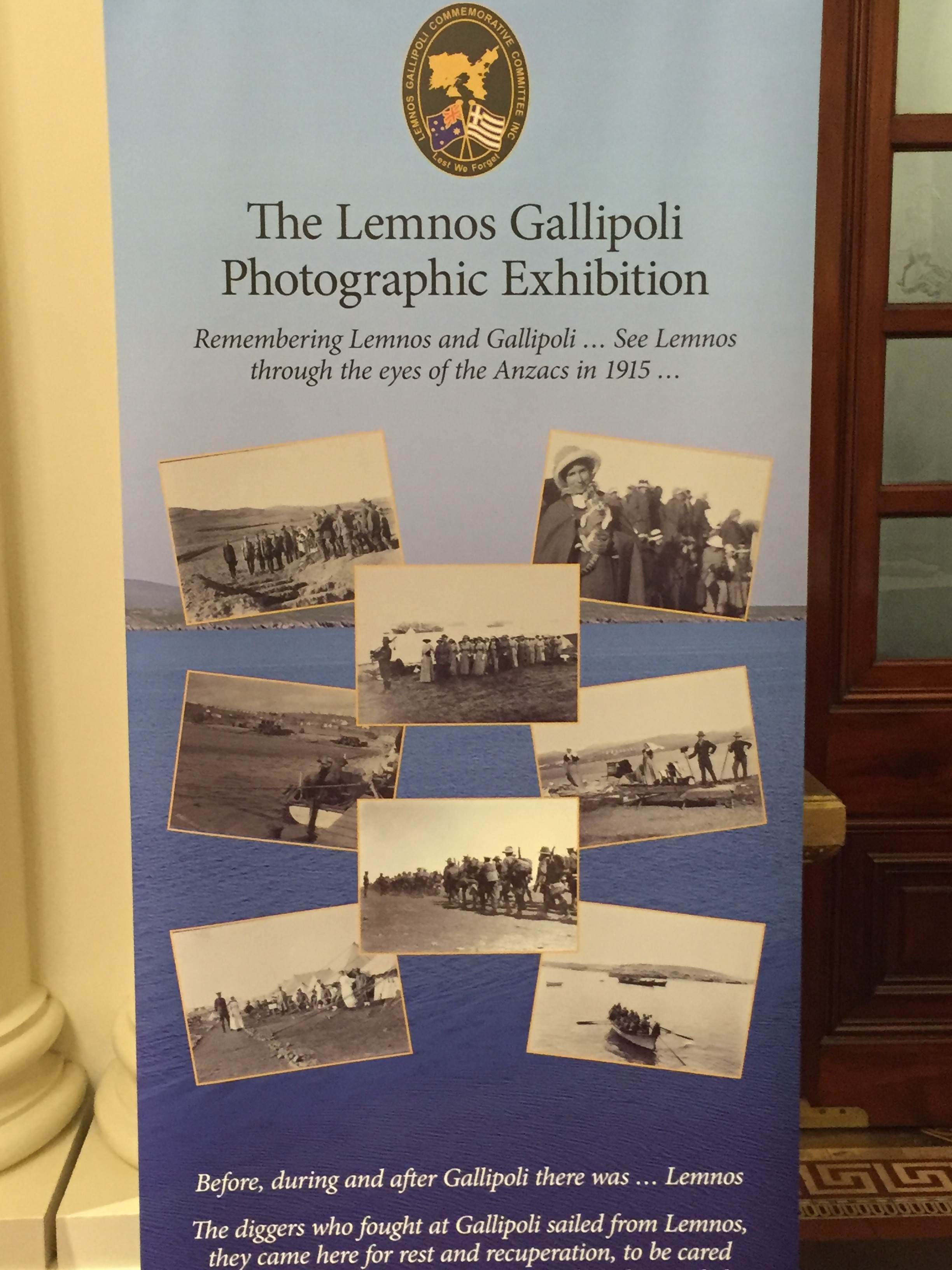 The Lemnos Gallipoli Commemorative Committee organised two events to honour the ANZAC campaign to the Greek island in 1915. A photo exhibition, dedicated to the Australian presence in Lemnos during the said campaign was launched on 8 August at the Queen’s Hall in the Parliament House. The Hon J. Eren MP, Minister for Veterans was the keynote speaker and in attendance were the President of the Legislative Council of the Parliament of Victoria, state Ministers and MPs, members of the Consular Corps etc.