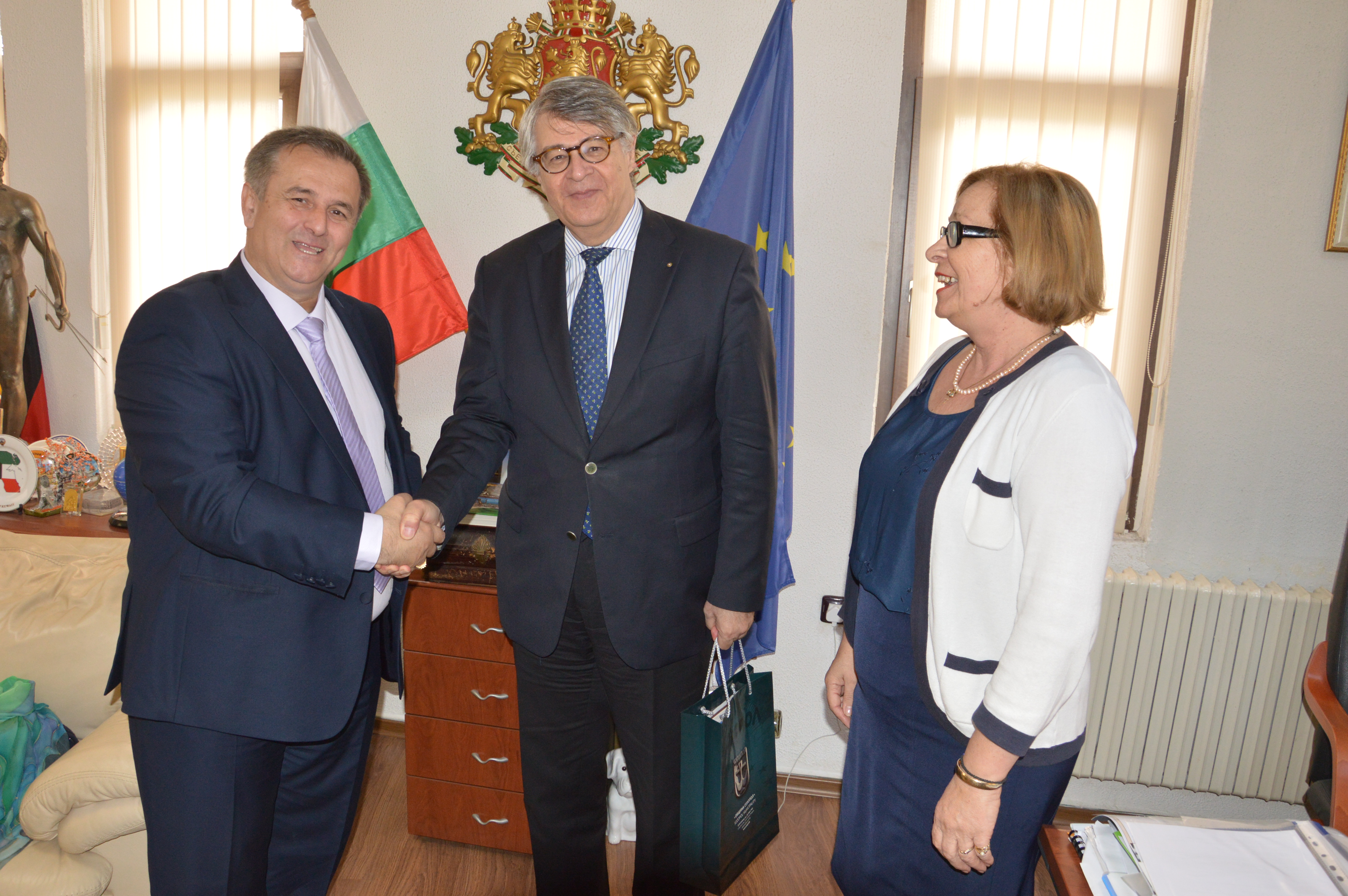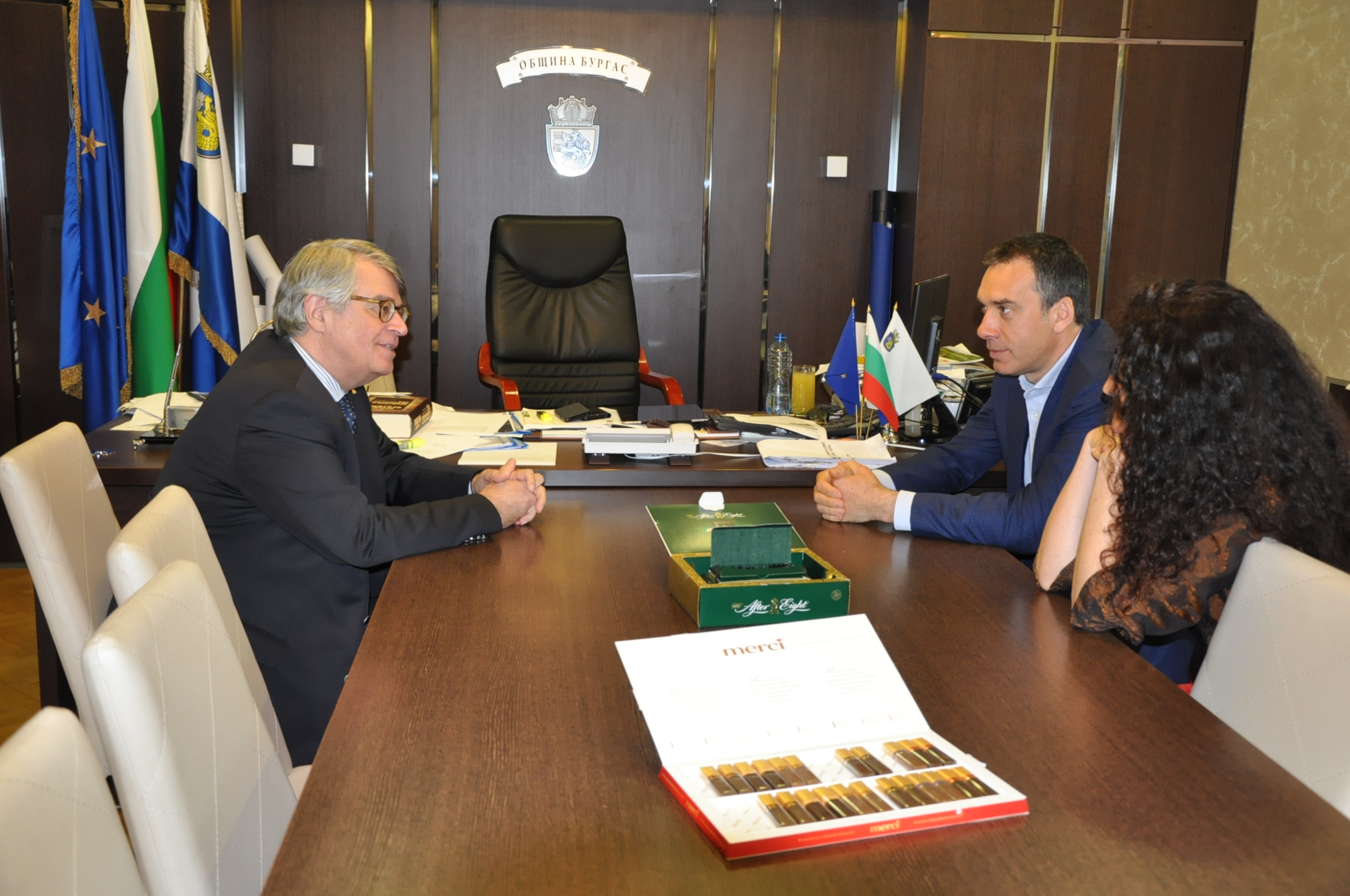 В същия ден, Посланикът се срещна с Кмета на Бургас г-н Николов, с когото обмениха мнения и по повод инфраструктурните проекти, които ще свързат Бургас с гръцки пристанища. След това, се срещна с г-н Димитър Канариев, Председател на българо-гръцкото сдружение „Пиргос” и с членове на управителния съвет.