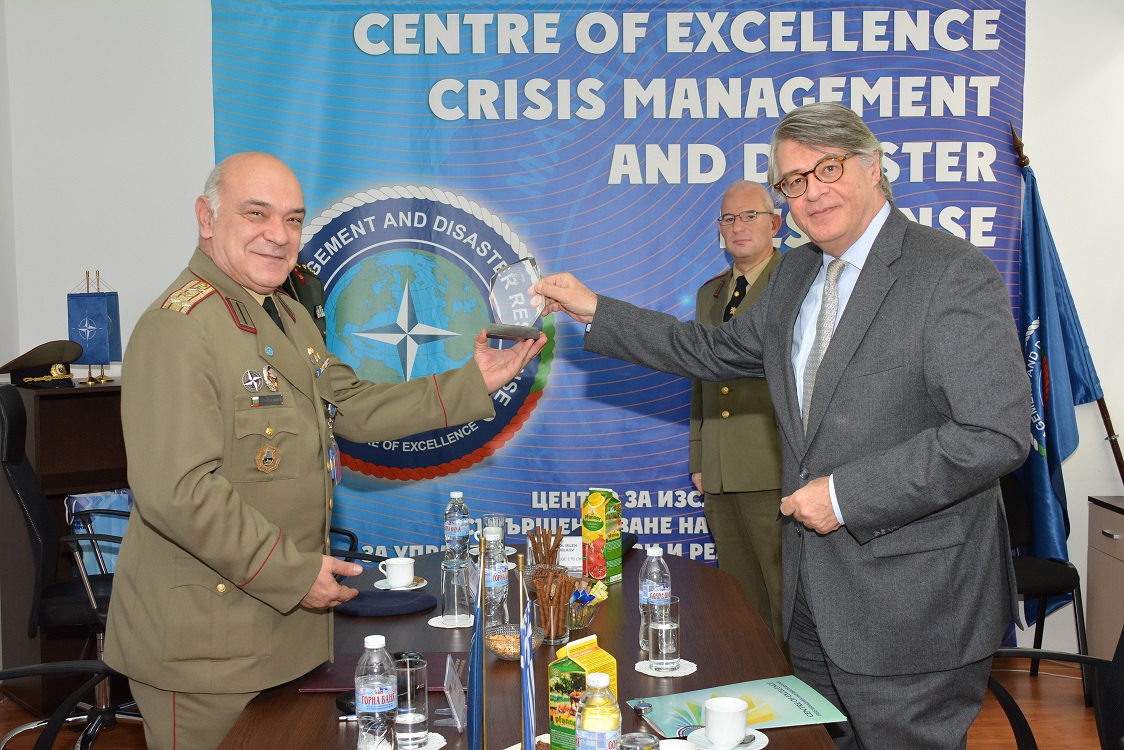 Посланикът на Гърция, г-н Василоконстандакис, посети вчера Центъра за усъвършенстване на НАТО в София (Crisis Management and Disaster Response – Centre Of Excellence – CMDR/COE) по покана на Директора на Центъра, полковник Русинов.