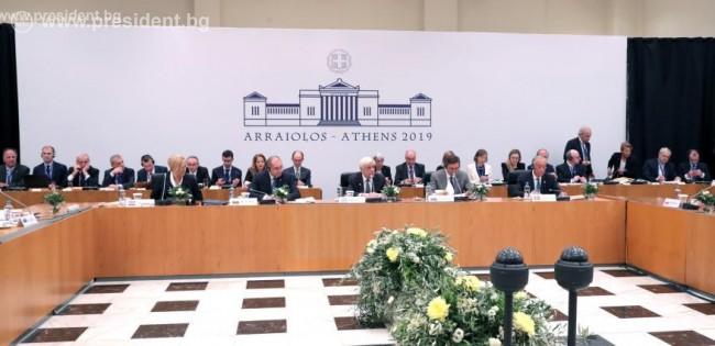 Η Α.Ε. ο Πρόεδρος της Ελληνικής Δημοκρατίας, κ. Προκόπιος Παυλόπουλος, φιλοξενεί σήμερα στην Αθήνα τη 15η άτυπη Σύνοδο των Αρχηγών Κρατών της Ομάδας Arraiolos, στην οποία συμμετέχουν 14 μη εκτελεστικοί Πρόεδροι κρατών μελών της Ε.Ε. Στη συνάντηση αυτή συμμετέχει και η Α.Ε. ο Πρόεδρος της Δημοκρατίας της Βουλγαρίας κ. Rumen Radev.