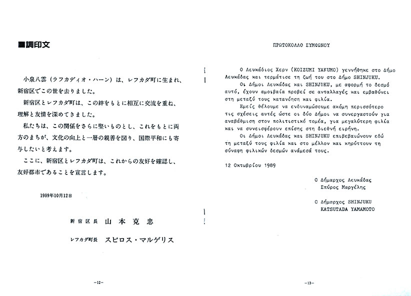 Πρωτόκολλο Συμφώνου για την Αδελφοποίηση των Δήμων Λευκάδας και Σιντζούκου - Agreement Protocol for the Twinning of the Municipalities of Lefkada and Shinjuku