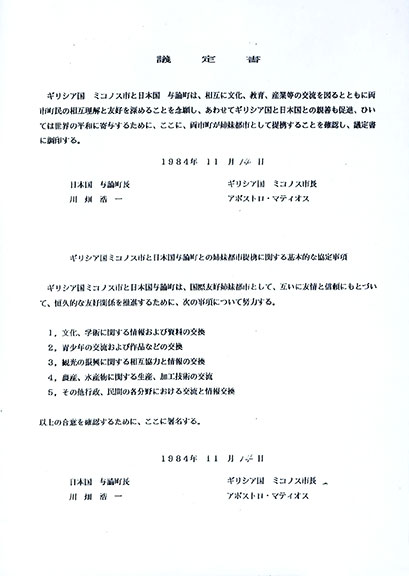Πράξη αδελφοποίησης των νησιών Μυκόνου και Γιορόν- Act of Twinning of the islands of Mykonos and Yoron