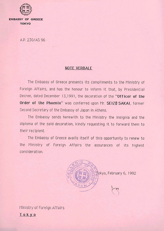 Aπονομή ελληνικού παρασήμου στον Ιάπωνα διπλωμάτη Σέιζο Σακάι - Awarding of a Greek medal to the Japanese diplomat, Seizo Sakai