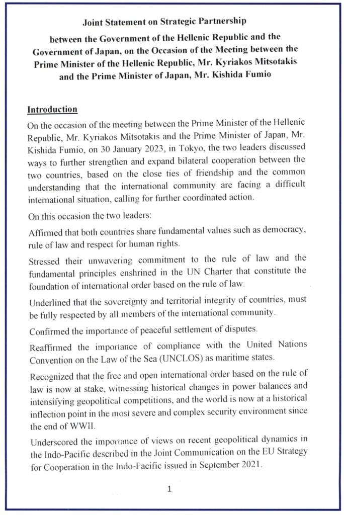 Κοινή Δήλωση Στρατηγικής Συνεργασίας μεταξύ Ελλάδας και Ιαπωνίας - Joint Statement on Strategic Partnership between Greece and Japan