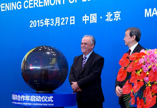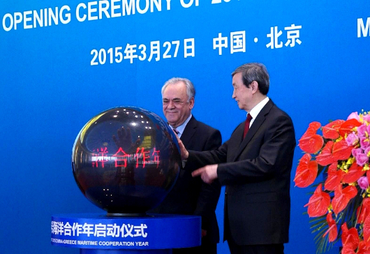 Την Παρακευή 27/3/2015, πραγματοποιήθηκε στο Πεκίνο, στον Κρατικό Ξενώνα Diao Yutai, η επίσημη τελετή έναρξης του Έτους Θαλάσσιας Συνεργασίας Ελλάδας-Κίνας. Την εκδήλωση, οποία τελούσε υπό την αιγίδα της Κρατικής Διοίκησης Θαλασσίων Υποθέσεων της Κίνας και της Ελληνικής Πρεσβείας στο Πεκίνο, τίμησαν με την παρουσία τους ο Αντιπρόεδρος της Κυβέρνησης κ. Δραγασάκης και ο Αναπληρωτής Πρωθυπουργός της Κίνας κ. Ma Kai απευθύνοντας χαιρετισμούς. Στην εκδήλωση παρέστησαν κινέζοι αξιωματούχοι και Ελλήνες του Πεκίνου.