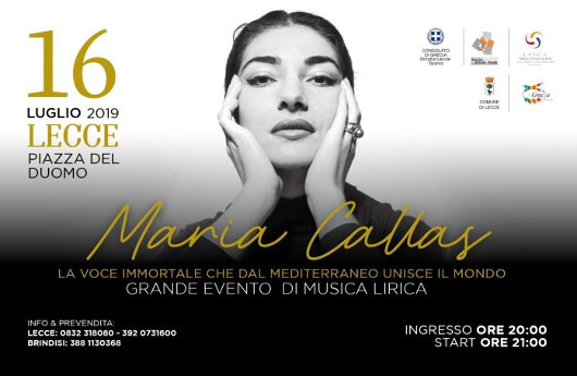 Στο κατάμεστο Θέατρο «Απόλλων» του Lecce περισσότεροι από 800 θεατες παρακολούθησαν μια λυρική Βραδιά, αφιερωμένη στη Μαρία Κάλλας την Τρίτη 16 Ιουλίου. Την φροντίδα της εκδηλωσης, που τελούσε υπό την αιγίδα της Ελληνικης Πρεσβείας, είχε η Επίτιμη Προξενος της Ελλαδος στο Μπρίντιζι κυρία Antonella Mastropaolo. H σοπράνο Ευμορφία Μεταξάκη, ο βαρύτονος Διονύσιος Σούρμπης και ο τενόρος Leonardo Gramegna ερμήνευσαν γνωστες άριες της μεγαλης Ελληνιδας με τη συνοδεία του κουιντέτου Florilegium υπό τον μαέστρο Valerio De Giorgi.