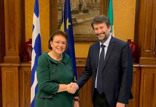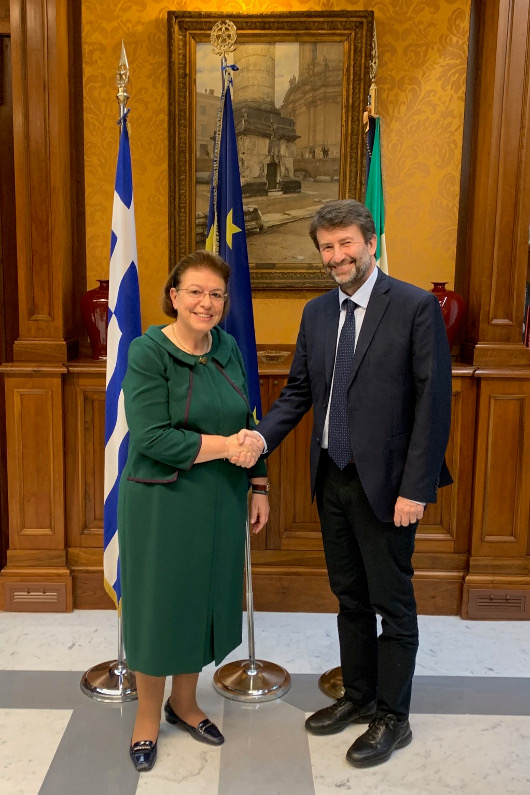 Την έκθεση εγακινίασαν με ομιλίες τους οι Υπουργοί Πολιτισμού Ελλάδας κα Λ. Μενδώνη και Ιταλίας κος D. Franceschini, κάνοντας αναφορές στην πολιτιστική συνεργασία Ελλάδας-Ιταλίας που βασίζεται στην υπογραφή μνημονίου του 2017 μεταξύ των δύο χωρών. Των εγκαινίων προηγήθηκε συνάντηση των δύο Υπουργών όπου συζητήθηκαν θέματα κοινού ενδιαφέροντος, όπως η καταπολέμηση του παράνομου εμπορίου πολιτιστικών αγαθών και οι πολιτιστικές ανταλλαγές στο πλαίσιο ενός προγράμματος Erasmus για τον πολιτισμό, που οι Υπουργοί σκοπεύουν να προτείνουν στους ομολόγους τους της ΕΕ.
