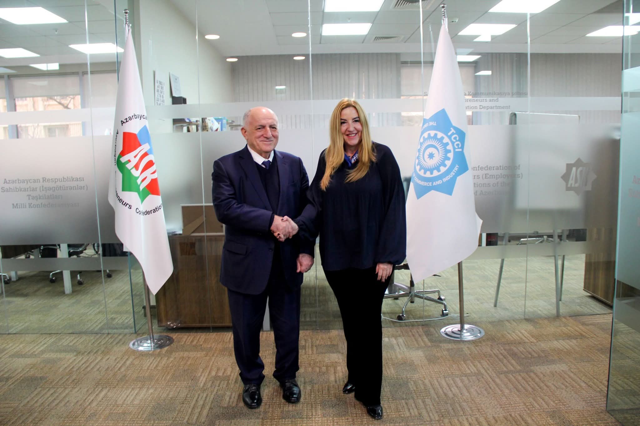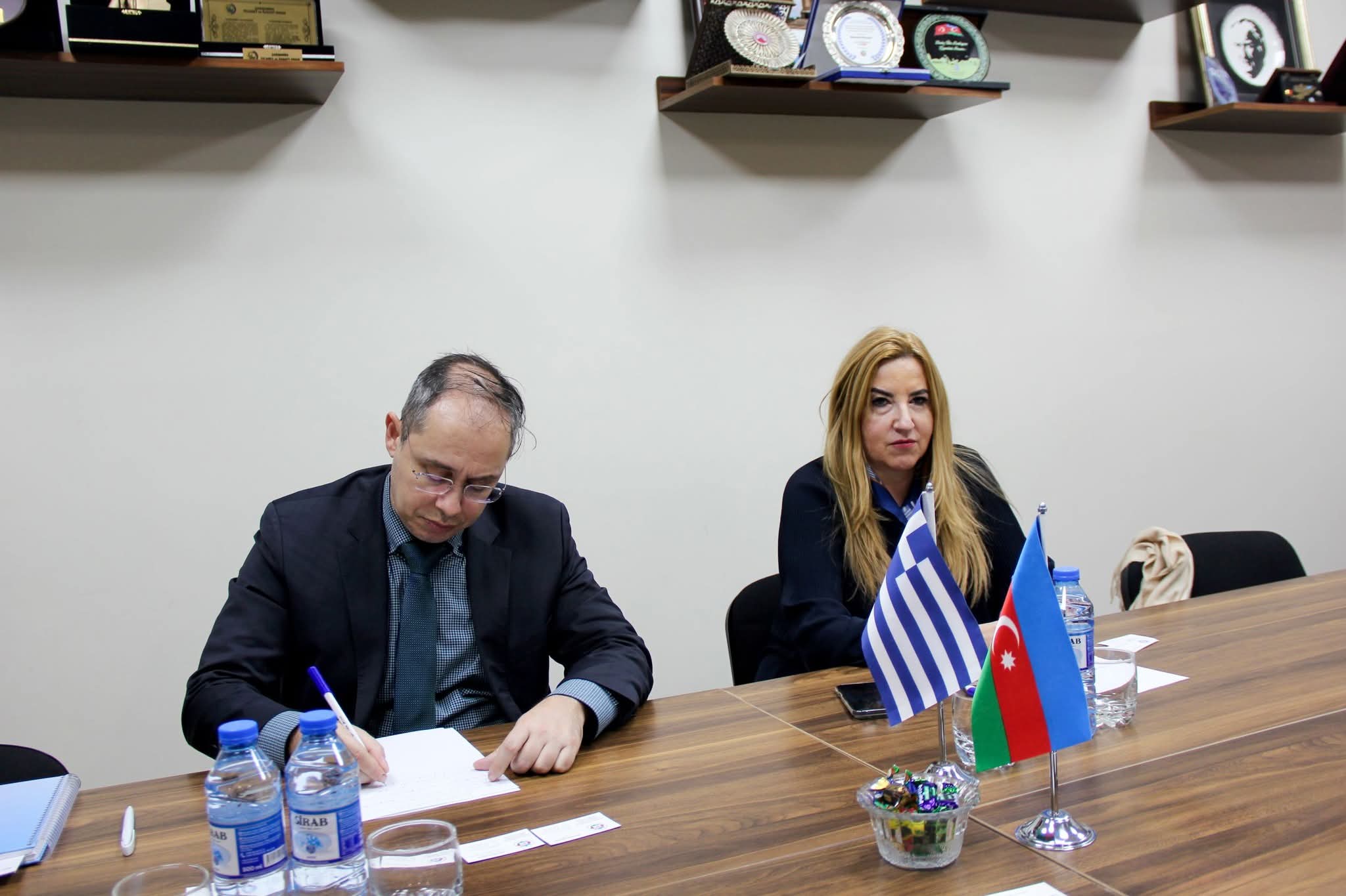 Η Πρέσβης της Ελλάδας, κα Μαρία Παπακωνσταντίνου, πραγματοποίησε συνάντηση, παρουσία του Επικεφαλής του Γραφείου Οικονομικών και Εμπορικών Υποθέσεων της Πρεσβείας, κ. Δημήτριου Μάου, με τον Πρόεδρο της Συνομοσπονδίας Επιχειρηματιών της Δημοκρατίας του Αζερμπαϊτζάν, κ. Mammad Musayev.