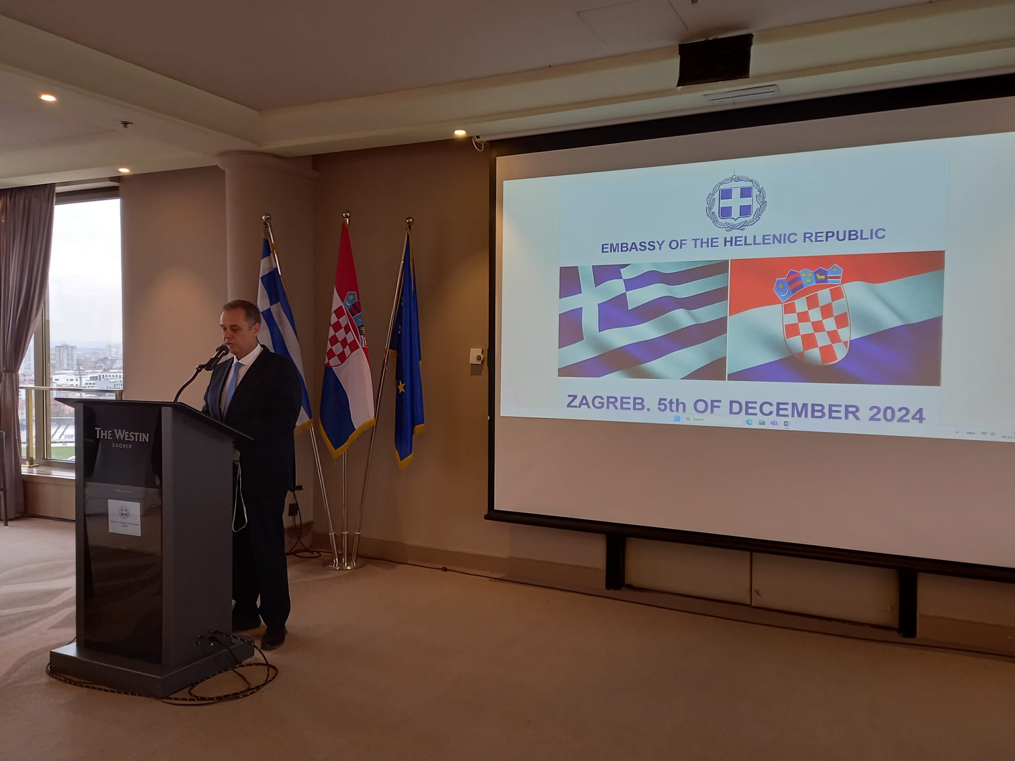 Η Πρεσβεία της Ελλάδος στην Κροατία διοργάνωσε χθες, 5 Δεκεμβρίου 2024, εκδήλωση με θέμα : "20 αιώνες Ελληνικής παρουσίας στην Κροατία", με αφορμή την άφιξη στο Ζάγκρεμπ, του νέου Πρέσβη της Ελλάδος κ. Αθανασίου Παρέσογλου. Ομιλητές στην εκδήλωση ήταν οι Καθηγητές Αρχαιολογίας του Πανεπιστημίου του Ζάγκρεμπ, κα Helena Tomas και κ. Hrvoje Potrebica, που παρουσίασαν τα ανασκαφικά ευρήματα που αποδεικνύουν την Ελληνική παρουσία στην Κροατία. Στην εκδήλωση παραβρέθηκαν εκπρόσωποι της κροατικής πολιτειακής και πολιτικής ηγεσίας, το σύνολο των επικεφαλής των ξένων διπλωματικών Αρχών στο Ζάγκρεμπ, εκπρόσωποι του ακαδημαικού και επιχειρηματικού κόσμου και πολλοί Έλληνες και φιλέλληνες.