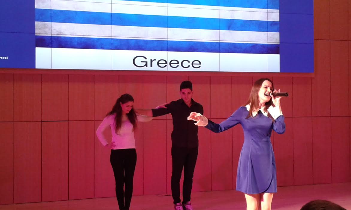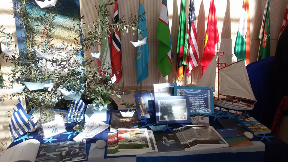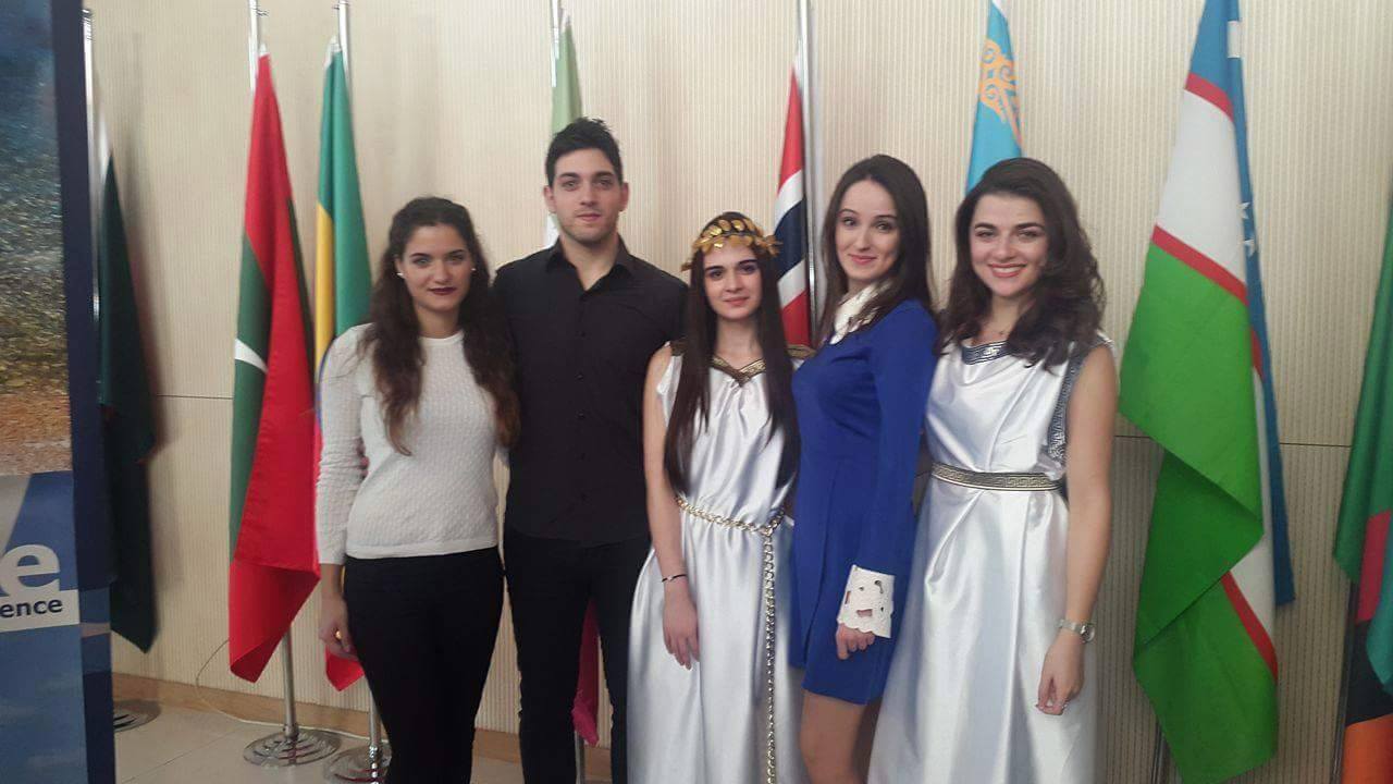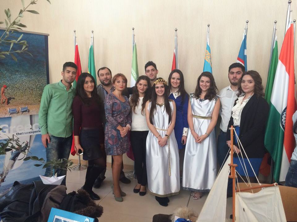 ADA University organized its 5th Annual International Festival on Friday, November 20, 2015. Foreign Embassies in Azerbaijan, international and local students of ADA University and Guests participated in order to celebrate intercultural communication and promote cultural dialogue among nations. The Embassy of Greece participated with a stand promoting Greek culture and spirit . Ülkər Əliyeva, graduate of the of Greek Studies Centre, performed a famous Greek song, accompanied by a choreography danced by Xristos Tragas and Artemis Xristou, students from Greece.