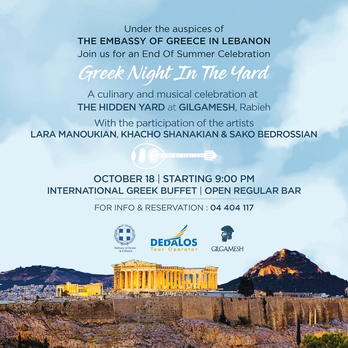 Greek Night in the Yard @Gilgamesh, Rabieh, October 18Greek Night in the Yard @Gilgamesh, Rabieh, October 18
