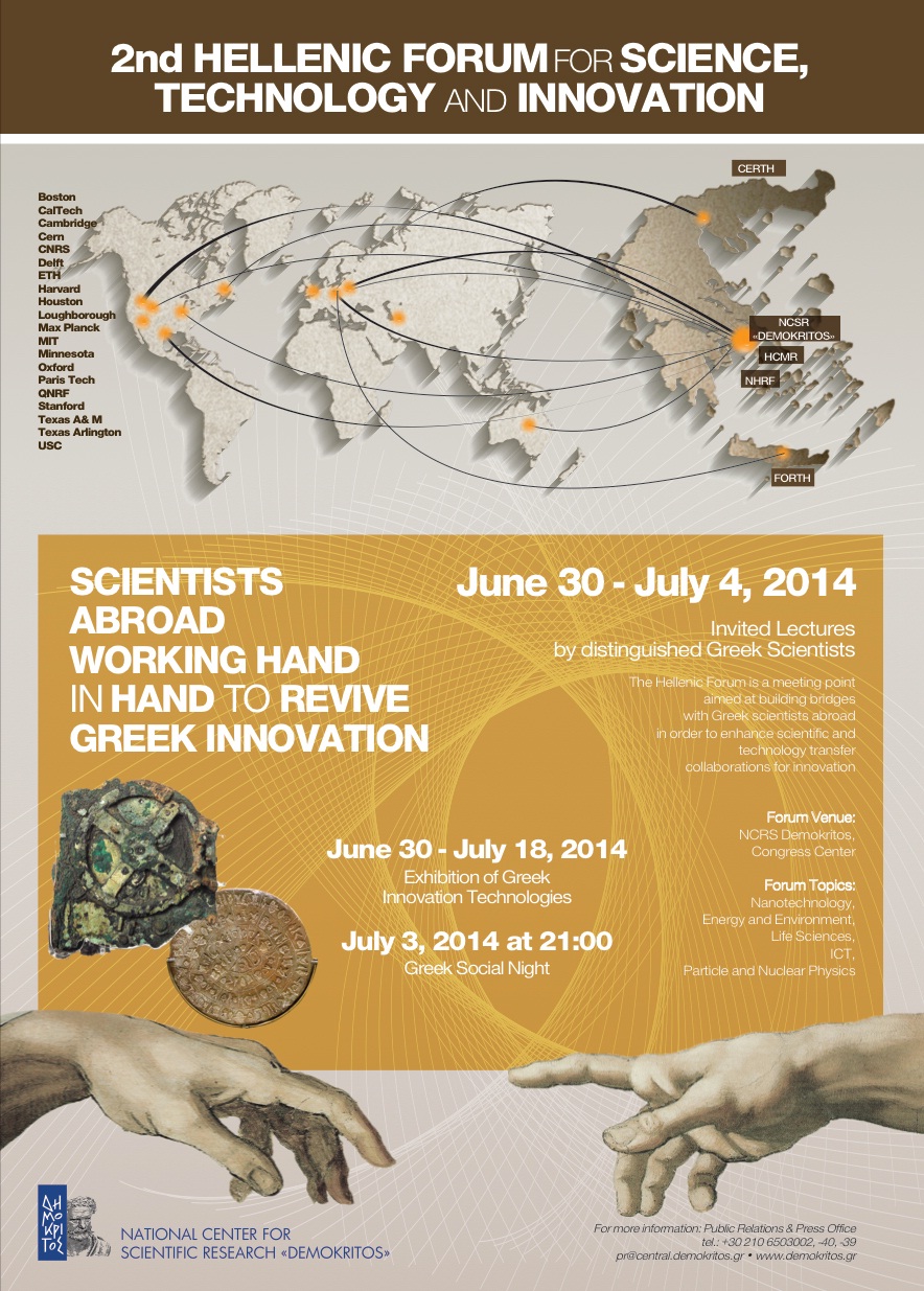 The 2nd Hellenic Forum for Science, Technology and Innovation organized by the National Center for Scientific Research “Demokritos” will take place from June, 30th to July 4th, 2014 at the campus of the Research Center.