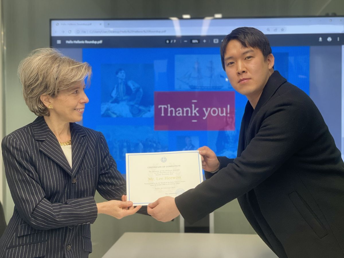 The Embassy of Greece held a ceremony for the completion of activities of the 1st round of the Hello Hellenic project on February 28th. The Ambassador, H.E. Ms. Ekaterini Loupas, taking a look back at the course of the project, congratulated the participants for their exceptional articles and praised them for creating active bridges of cultural exchange between Greece and Korea. We thank all participants for their remarkable effort and look forward to the future rounds of the Hello Hellenic project!