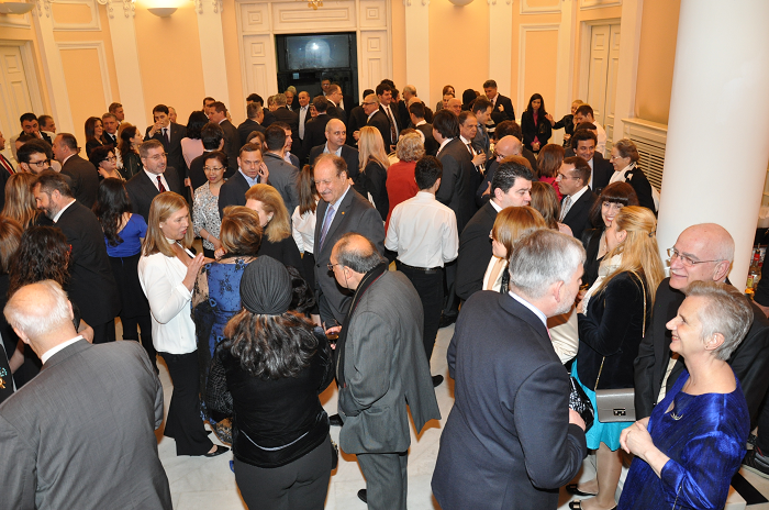 The celebrations for the National Day culminated on the 24th of March with the official reception that took place at the premises of the Embassy the very evening. The Government of Romania was represented by the Minister of Energy, Mr. Grigorescu. The Ministry of Foreign Affairs of Romania was represented by the State Secretary for European Affairs Mr. Badescu. Ambassadors and members of the Diplomatic Corps honoured the reception with their presence, as well as many compatriots.