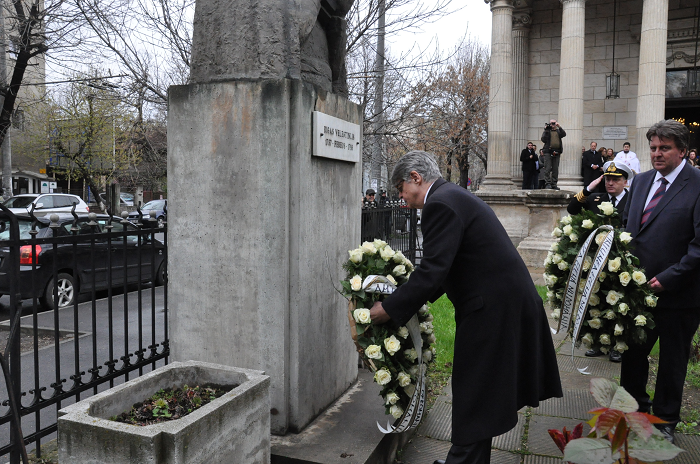 On the 25th of March, the very day of the National Anniversary, a religious service took place at the Chapel of the Embassy, with the attendance of representatives of the Greek community and the students of the Greek School of Bucharest “Athena”. On the occasion, the message of H.E. the President of the Hellenic Republic was read, before the Ambassador delivered a speech. At the end of the ceremony, a wreath laying took place at the statue of Rigas Fereos, at the courtyard of the Chapel.