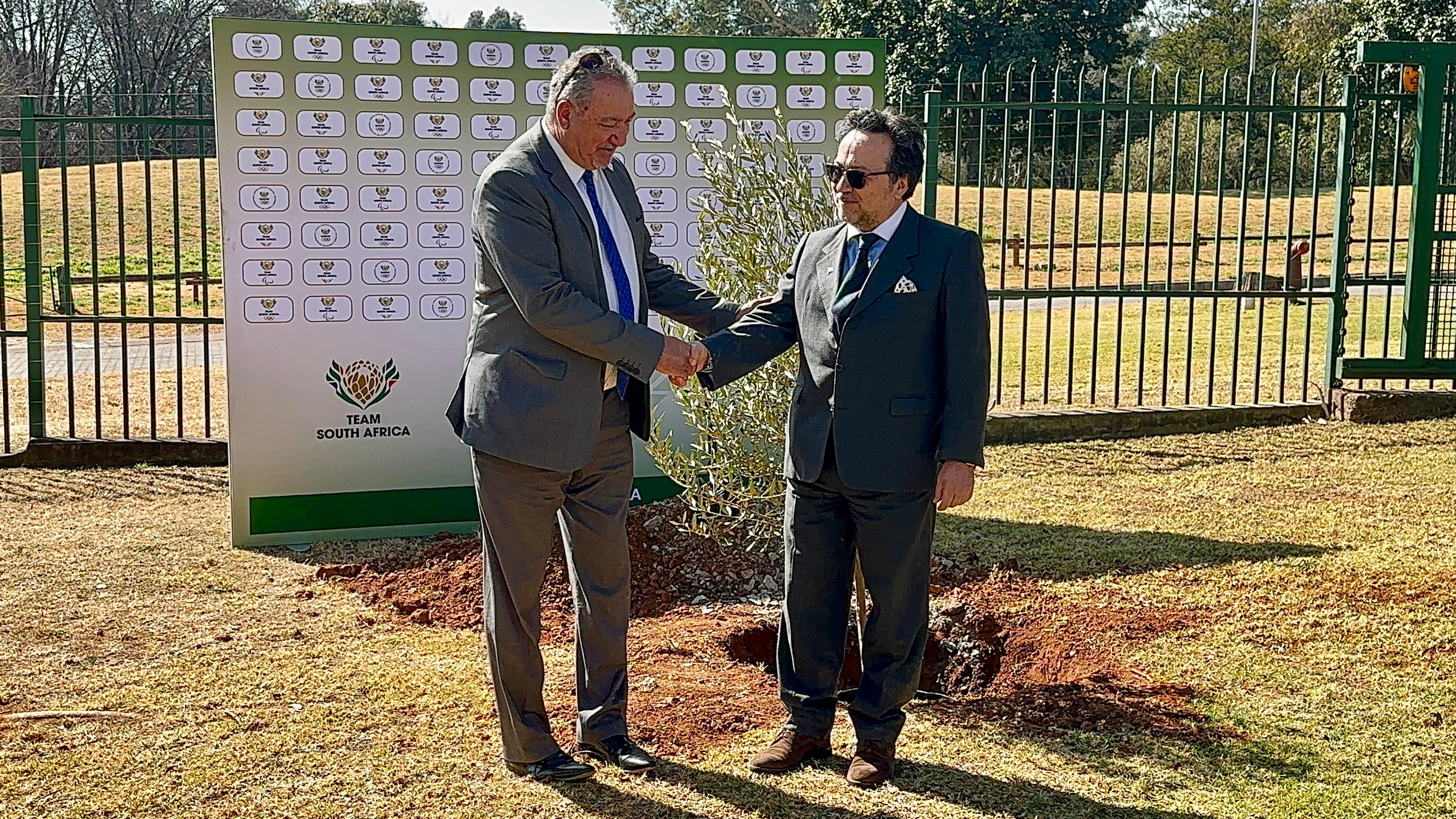 The President of South African Sports Confederation, Olympic and Paralympic Committee, Mr.Barry Hendricks, and H.E. the Ambassador of the Hellenic Republic in South Africa, Mr. G.Aravositas, participated on June 30th in Johannesburg, in a historic olive tree planting ceremony, symbolising the deep Olympic and cultural bonds between the two nations.