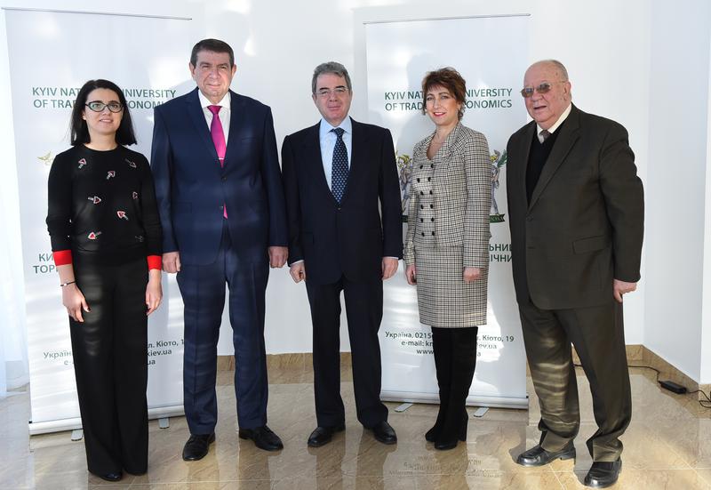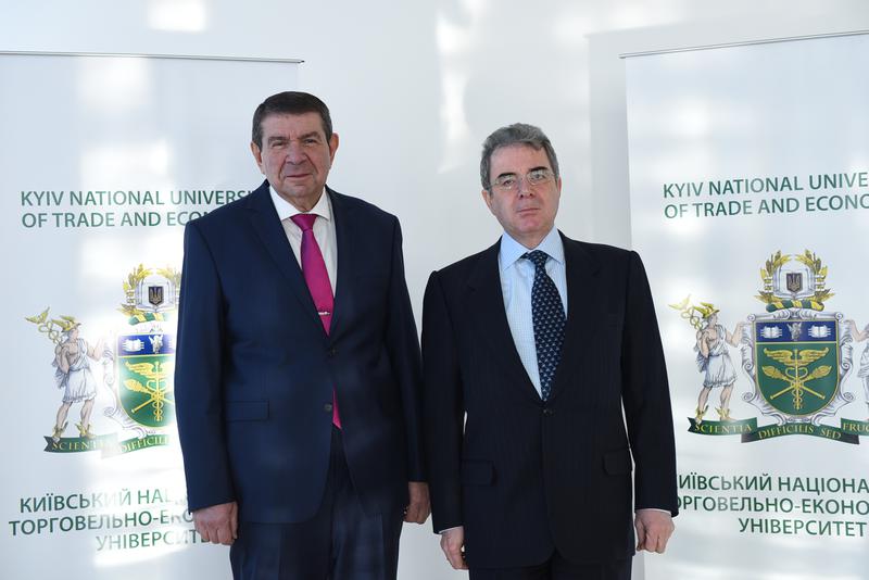 Надзвичайний та Повноважний Посол Грецької Республіки в Україні Георгіос Пукаміссас відвідав першим серед українських вищих навчальних закладів саме КНТЕУ. Безумовно цей візит був невипадковим, адже Київський національний торговельно-економічний університет та Грецію пов’язують давні відносини. Про це свідчать, зокрема, угоди про співробітництво університету з десятком університетів та коледжів Греції, проведення практики студентів в кращих готелях Греції.