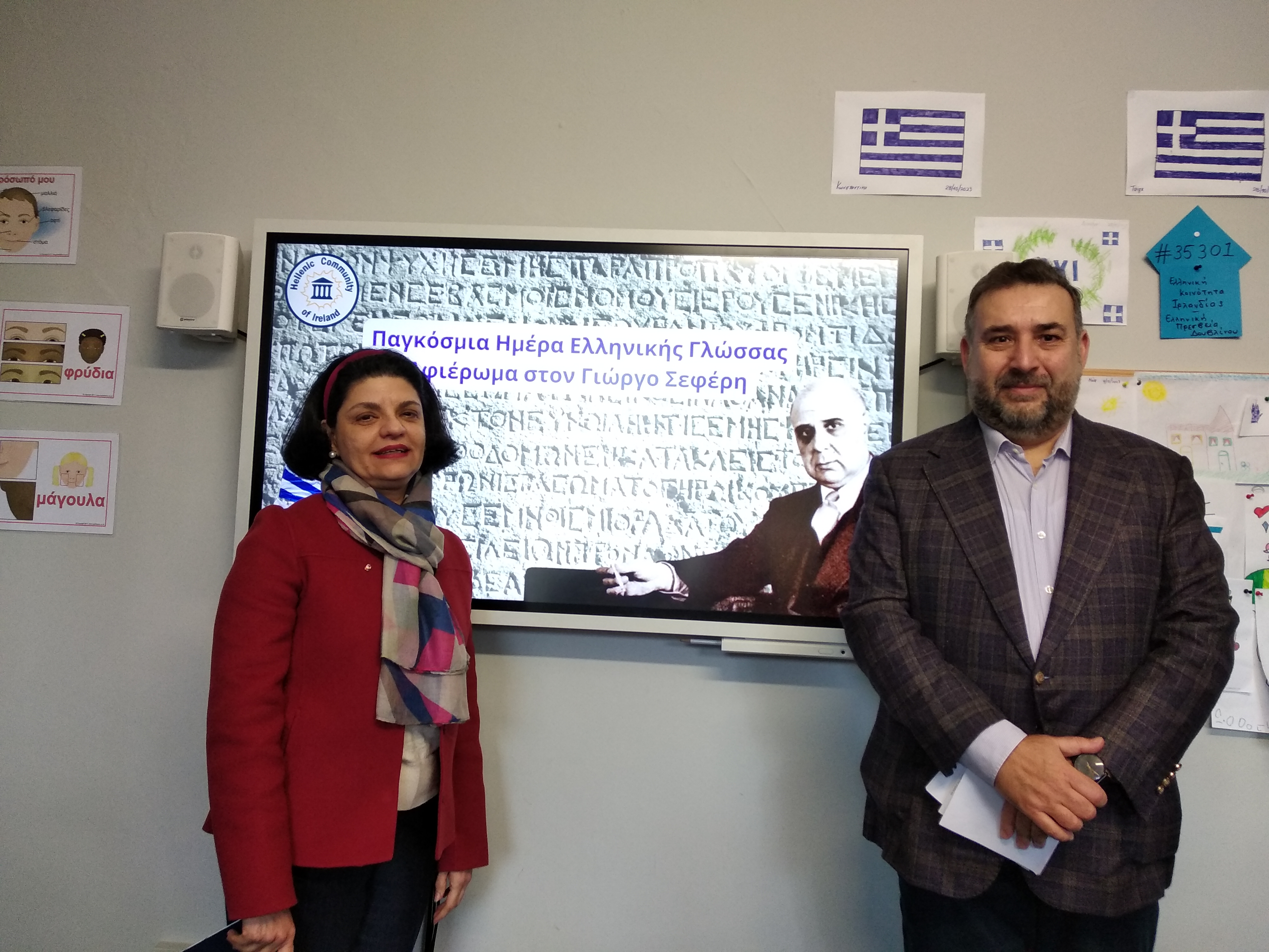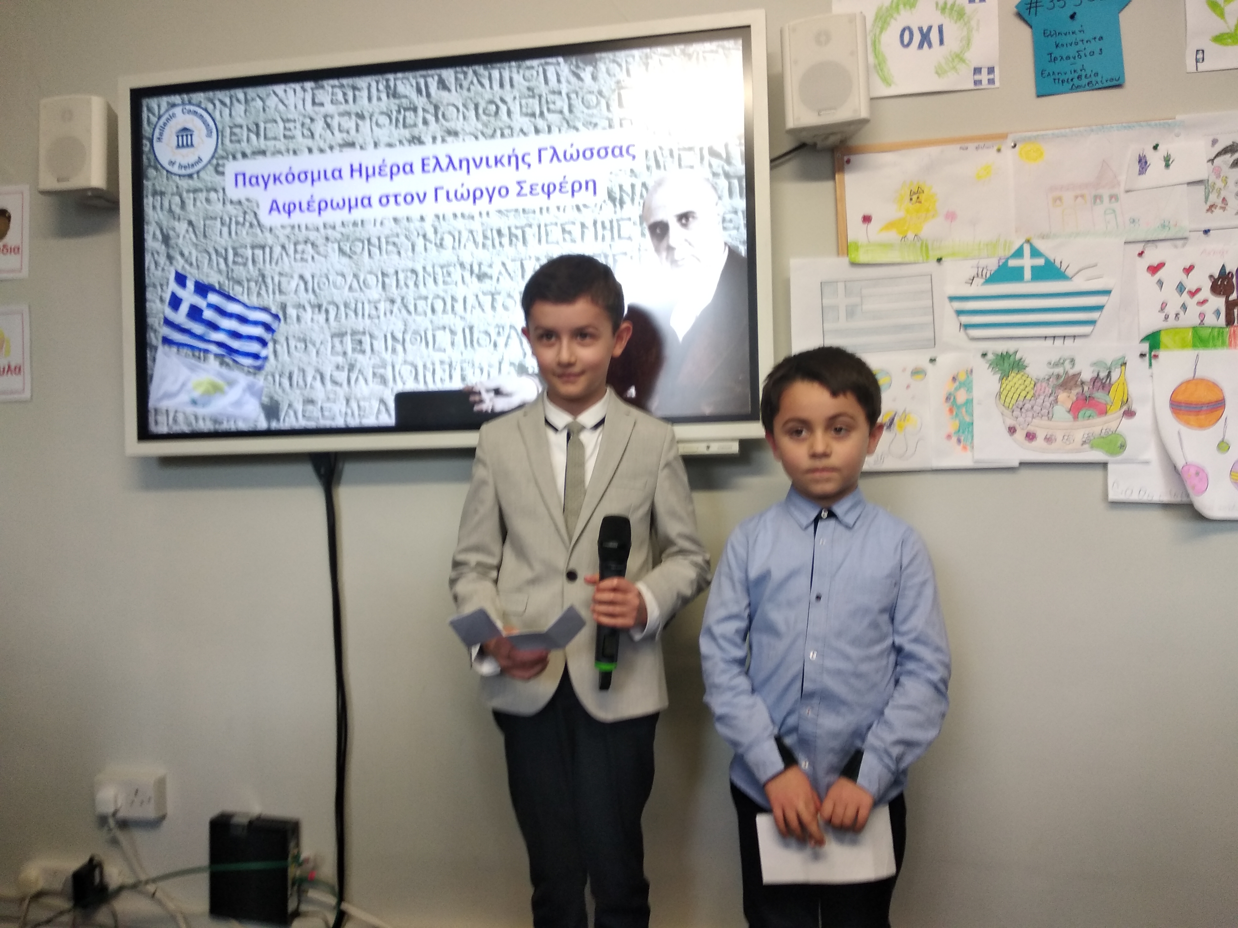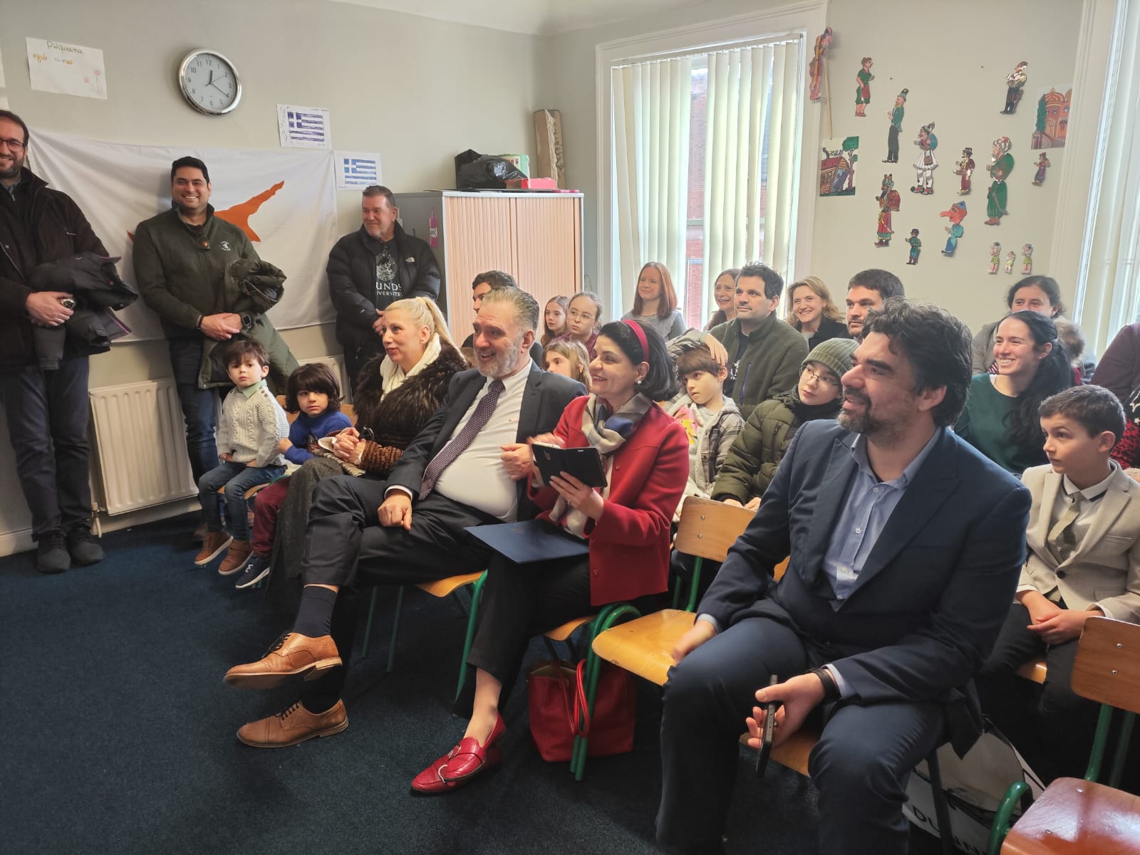 Η Πρέσβης κα Μαγδαληνή Νικολάου παρέστη στην γιορτή που διοργανώθηκε από την Ελληνική Κοινότητα Ιρλανδίας, με την ευκαιρία της Παγκόσμιας Ημέρας της Ελληνικής Γλώσσας (9 Φεβρουαρίου). Στην εκδήλωση παρέστη επίσης ο Πρέσβης της Κύπρου κ. Λούης Τηλεμάχου. Θερμά συγχαρητήρια στους ιθύνοντες της Ελληνικής Κοινότητας καθώς και στους μαθητές και τις μαθήτριες του Τμήματος Ελληνικής Γλώσσας για την πολύ όμορφη αυτή πρωτοβουλία, αφιερωμένη, αυτή την χρονιά, στον νομπελίστα ποιητή και διπλωμάτη Γιώργο Σεφέρη.