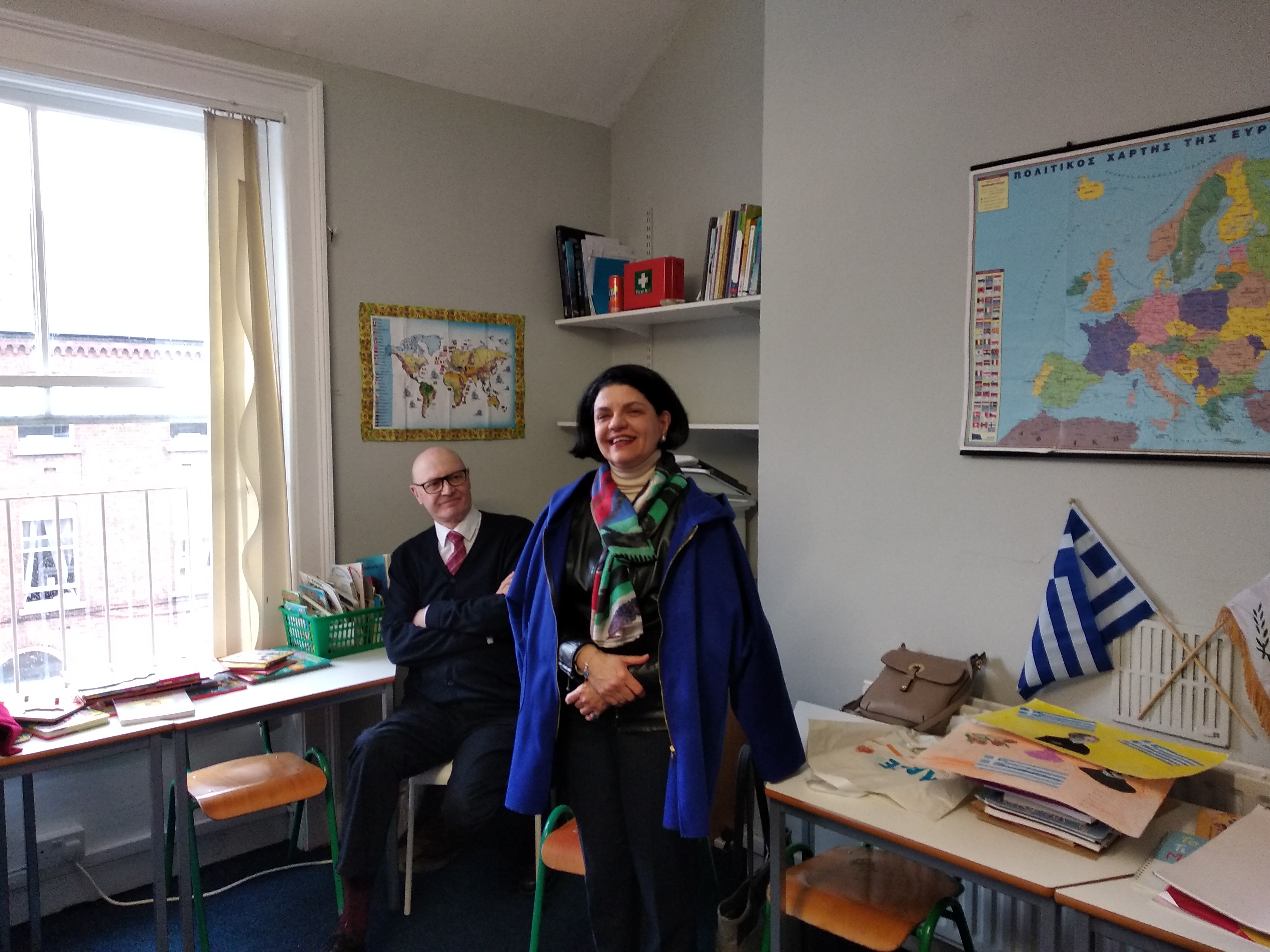 Η Πρέσβης κα Μαγδαληνή Νικολάου, με την ευκαιρία του εορτασμού της Ημερας της Ελληνικής Γλώσσας (9/2/2023) επισκέφθηκε τα γραφεία της Ελληνικής Κοινότητας Ιρλανδίας και τους χώρους διεξαγωγής των μαθημάτων ελληνικής γλώσσας. Εκεί, είχε την ευκαιρία να συναντήσει την Πρόεδρο της Κοινότητας κα Στέλλα Ξενοπούλου, διδάσκοντες, γονείς και μαθητές των τμημάτων εκμάθησης ελληνικών.