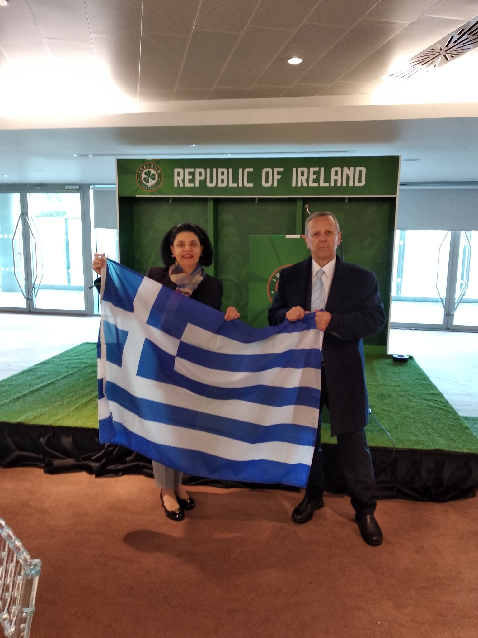 Η Πρέσβης κα Μαγδαληνή Νικολάου και τα στελέχη της Πρεσβείας μας είχαν την μεγάλη χαρά να παραβρεθούν, στις 13/10/2023, στον αγώνα της Εθνικής Ανδρών Ποδοσφαίρου με την Ιρλανδία, στο Aviva Arena Dublin, πλαίσιο του EURO 2024.