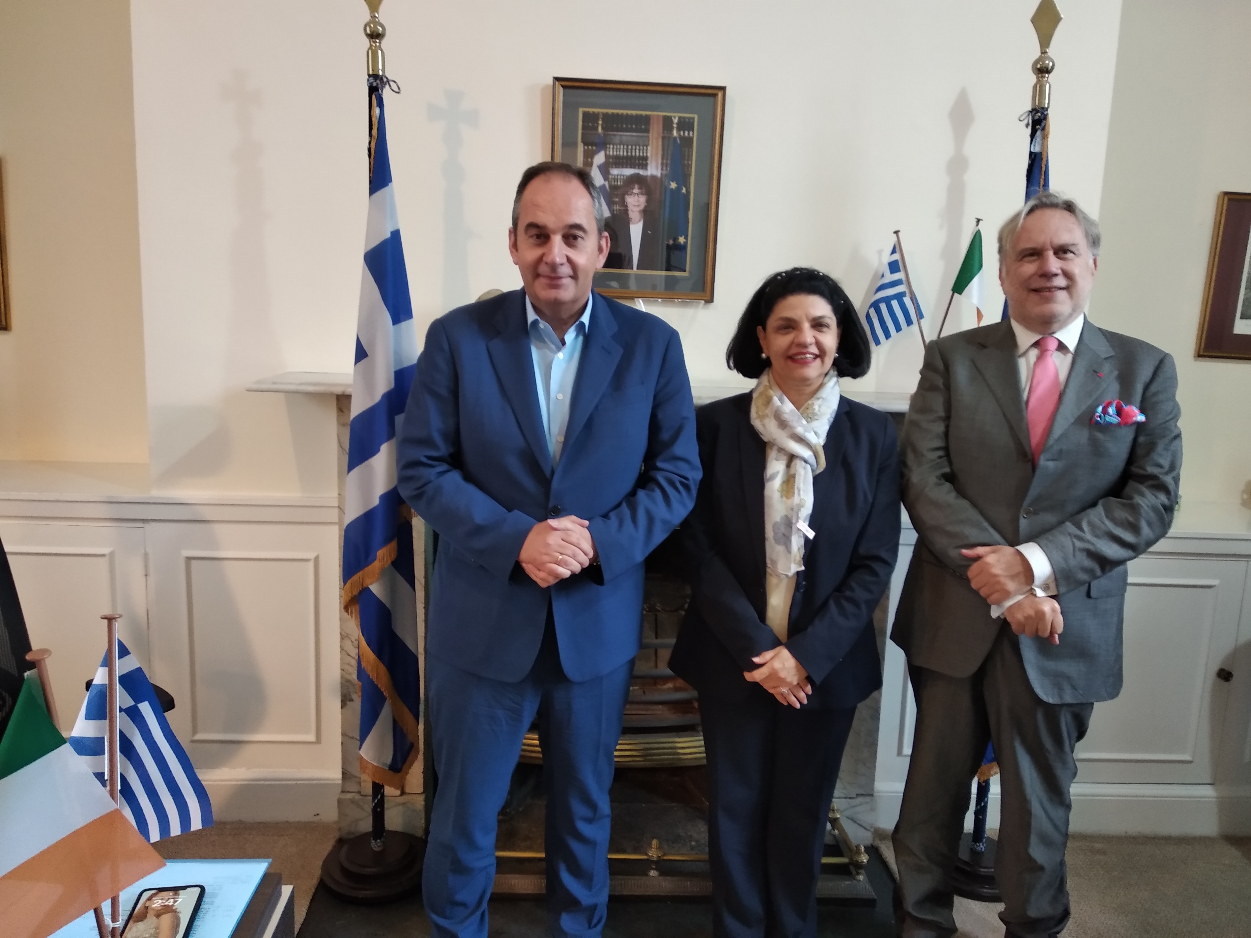 Με ιδαίτερη χαρά η Πρέσβης κα Μαγδαληνή Νικολάου και το προσωπικό της Πρεσβείας υποδέχθηκαν την αντιπροσωπεία της Βουλής των Ελλήνων υπό τον Α΄ Αντιπρόεδρο κ. Ιωάννη Πλακιωτάκη, με την συμμετοχή του πρώην Υπουργού Εξωτερικών κ. Γιώργου Κατρούγκαλου, του Γενικού Γραμματέα της Βουλής κ. Γιώργου Μυλωνάκη και του Διπλωματικού Συμβούλου της Βουλής Πρέσβεως κ. Κωνσταντίνου Οικονομίδη, οι οποίοι συμμετείχαν στην Ευρωπαϊκή Διάσκεψη των Προέδρων των Κοινοβουλίων των χωρών - μελών του Συμβουλίου της Ευρώπης (Δουβλίνο, 27-29/9/2023).