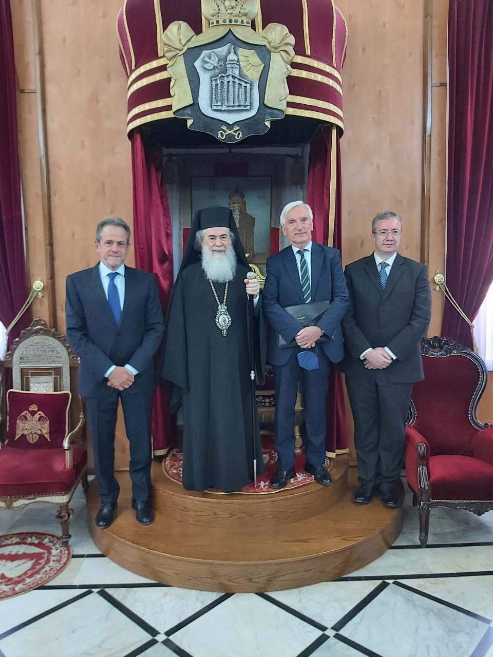 Ο Γενικός Γραμματέας κ. Δεμίρης, συνοδευόμενος από τον Πρέσβυ της Ελλάδας στο Ισραήλ κ. Κυριάκο Λουκάκη και τον Γενικό Πρόξενο της Ελλάδας στα Ιεροσόλυμα κ. Ευάγγελο Βλιώρα, επισκέφθηκε επίσης το Πατριαρχείο Ιεροσολύμων, όπου έγινε δεκτός από τον Μακαριώτατο Πατριάρχη κ. Θεόφιλο Γ΄.