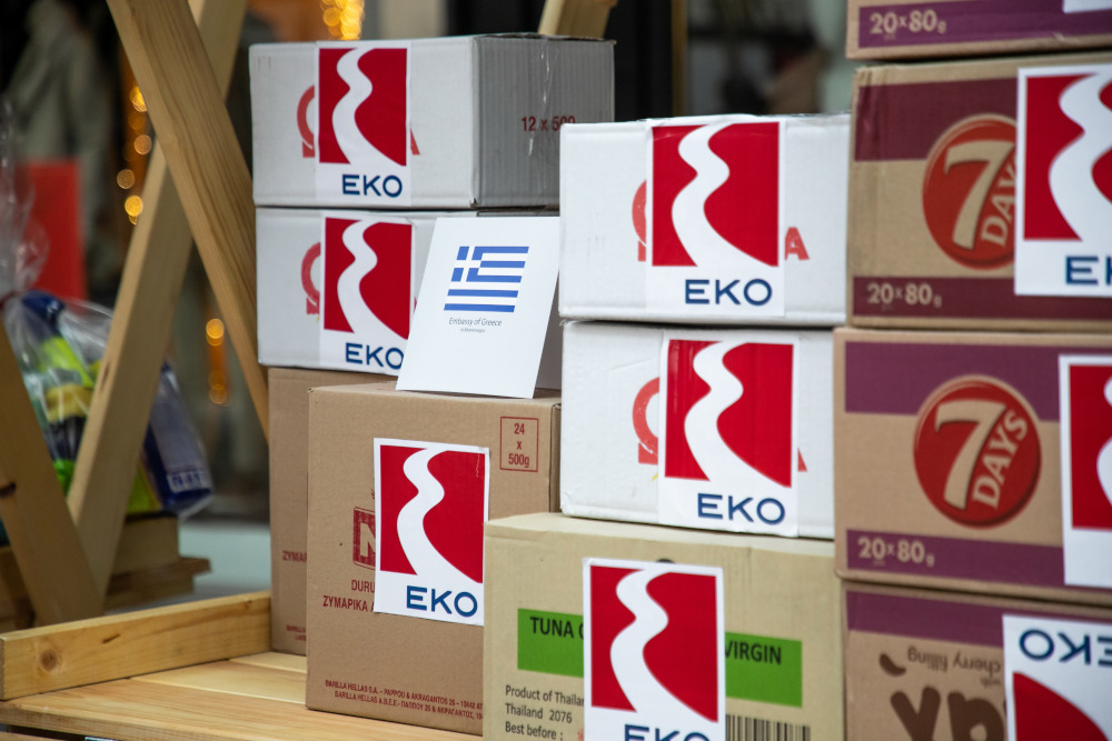 Ambasada je poklonila velike količine namirnica, kao što je ekstra djevičansko maslinovo ulje, tjestenine, mahunarke, rižu, konzervisanu ribu iz grčkih mora, kao i popularni i na crnogorskom tržištu, "7 Days". Svi proizvodi su došli iz Grčke i kupljenži su donacijom kompanije "Jugopetrol", poznatih benzinskih stanica EKO, kao i donacijom grčkog preduzetnika i poznatog filantropa Petrosa Statisa.