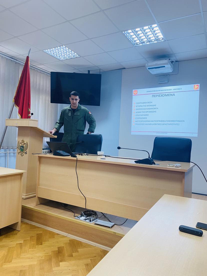 Tokom bilateralnog sastanka sa načelnikom Vazduhoplovstva razgovarano je o pitanjima bilateralne saradnje Grčke i Crne Gore, zemnalja koje su članice NATO-a i imaju odlične odnose. Razgovarano je i o obuci oficira Crne Gore u Grčkoj, kroz program stipendiranja. Načelnik Vazduhoplovstva Crne Gore izrazio je zadovoljstvo visokim nivoom obučenosti crnogorskih vazduhoplovaca, koji nakon diplomiranja ulaze u sastav Vojske Crne Gore.
