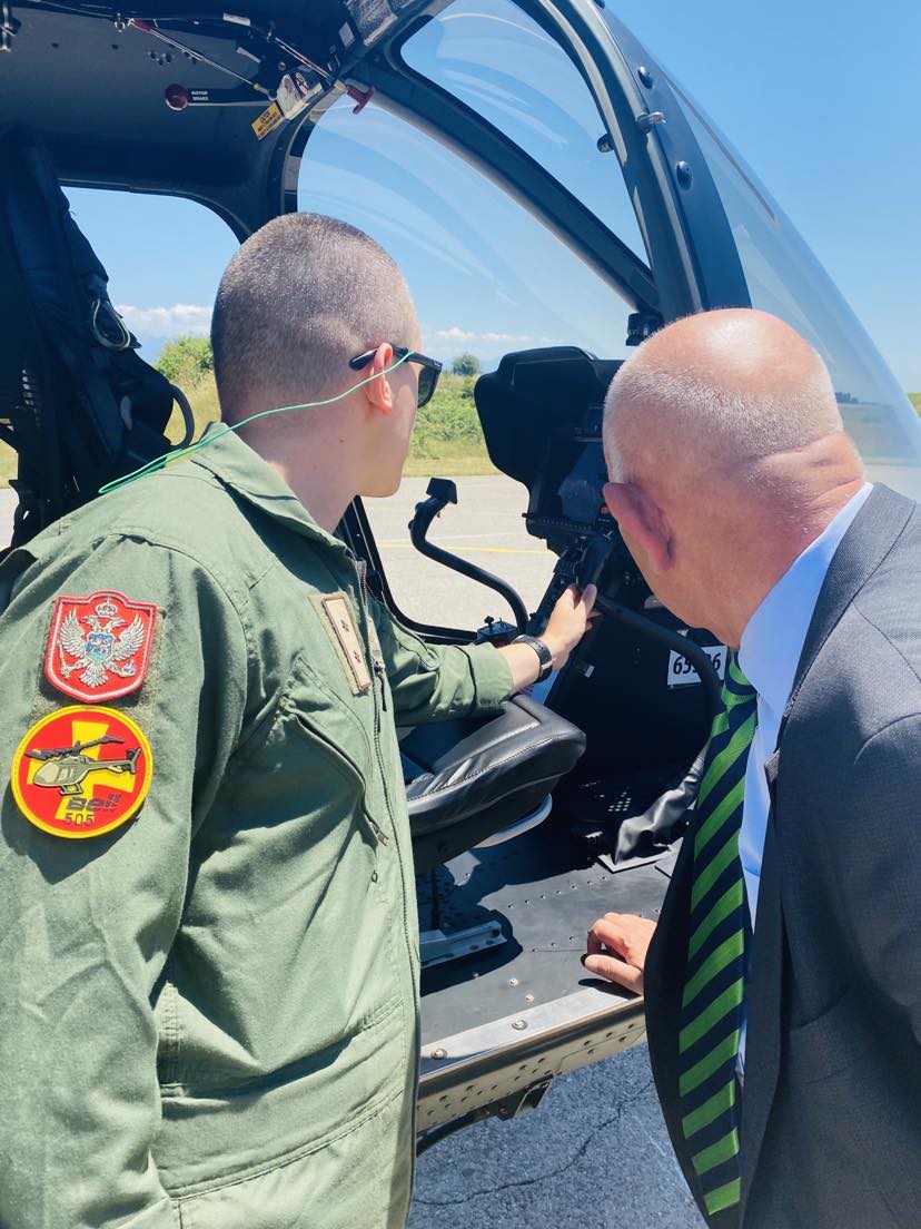 Ambasador je obišao vazduhoplovnu bazu i razgovarao sa oficirima crnpogorskog ratnog vazduhoplovstva, uključujući i diplomce Ikaron škole u Grčkoj.