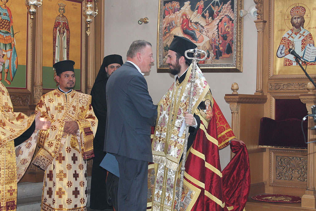 Στην ως άνω τελετή την Αυτού Θειοτάτη Παναγιότητα τον Οικουμενικό Πατριάρχη κ.κ. Βαρθολομαίο εκπροσώπησε ο κ. Ιωσήφ, Μητροπολίτης Μπουένος Άιρες και Νοτίου Αμερικής, ο οποίος ενθρόνισε το νέο Μητροπολίτη, πλαισιούμενος από σύσσωμο τον κλήρο.