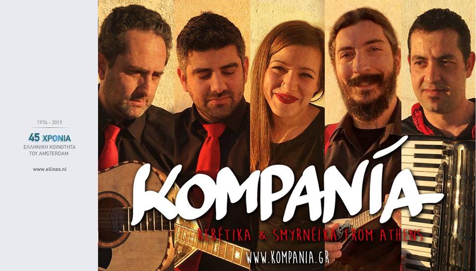 Με αφορμή τα 45 χρόνια λειτουργίας της, η Ελληνική Κοινότητα του Άμστερνταμ διοργανώνει μια καλοκαιρινή συναυλία με το διεθνούς φήμης συγκρότημα KOMPANÍA σε μια από τις πιο ιστορικές τοποθεσίες στο κέντρο του Άμστερνταμ.