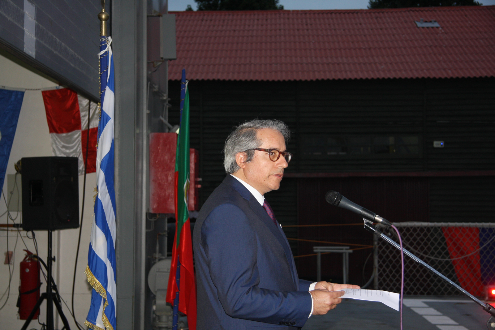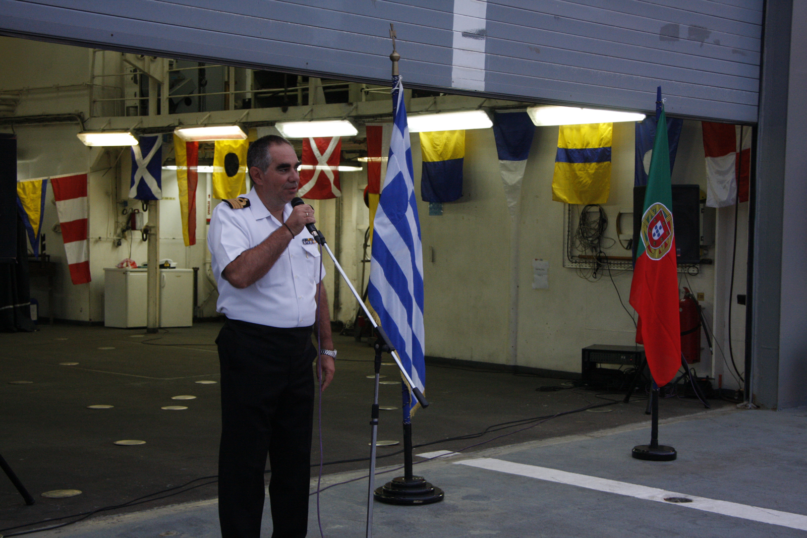 Κατά τη δεξίωση που παρέθεσε ο Κυβερνήτης Αντιπλοίαρχος Α. Σπανός Π.Ν., σύντομη ομιλία έκανε ο Άμισθος Πρόξενος στο Πόρτο κος Alvaro Sequeira Pinto.