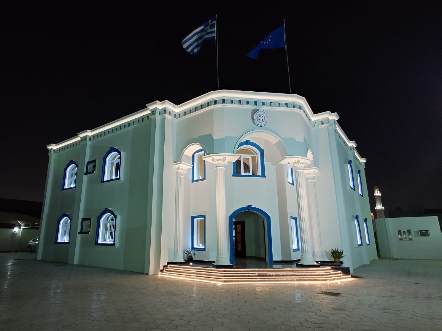 Φωτογραφίες Πρεσβείας Ντόχα, έπειτα από την ανακαίνιση της εξωτερικής εμφάνισης Αρχής.