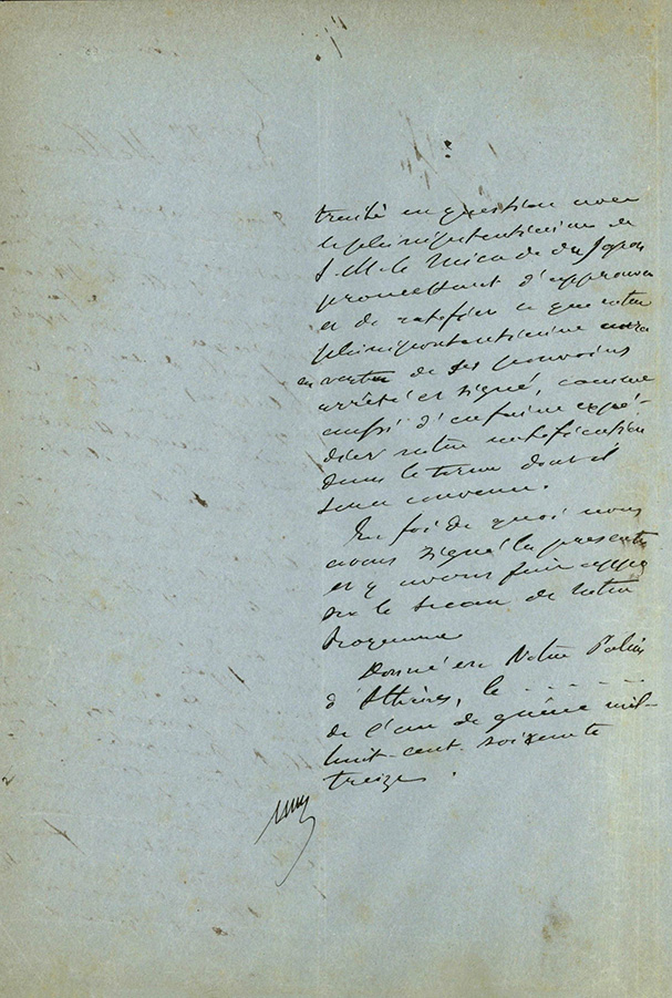 9 May 1873 - King Georgios Ι of the Hellenes sends an invitation to the Emperor of Japan to start negotiations for the conclusion of a Treaty of Commerce and Navigation between the two countries. This is the final draft of the relevant letter.