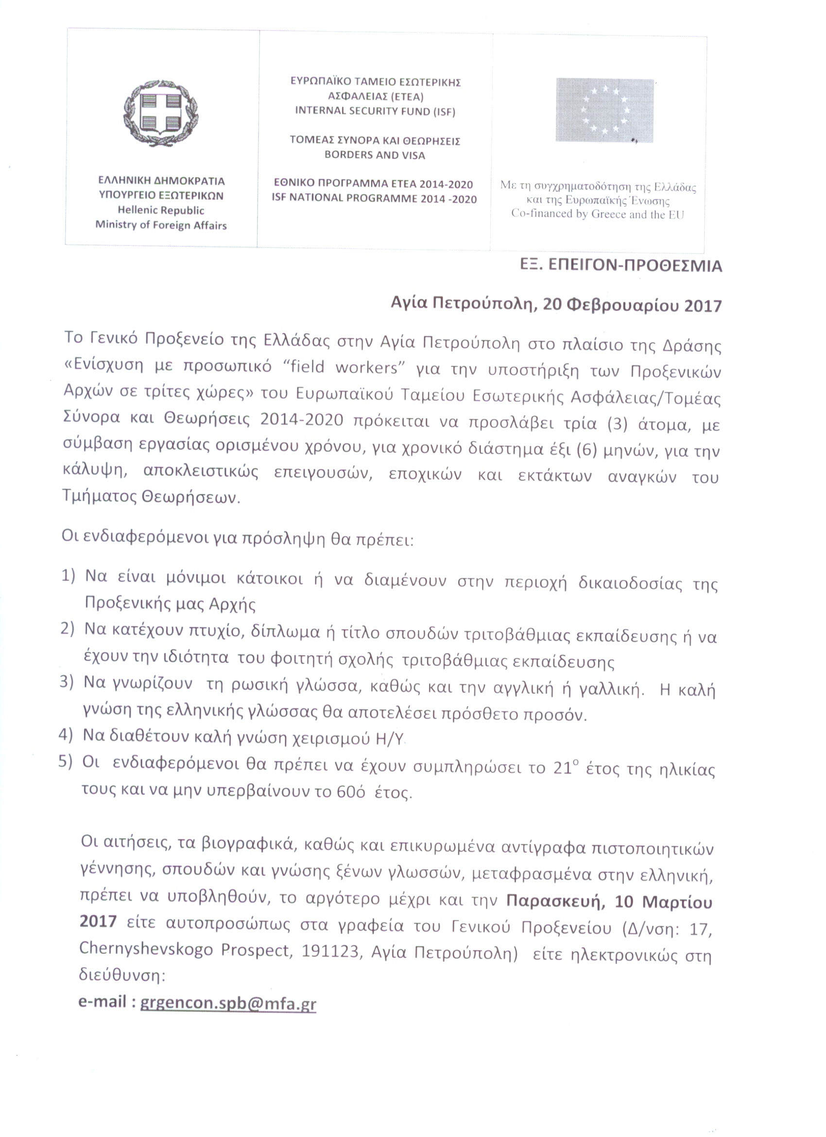 Προκήρυξη θέσεων εργασίας "field workers"