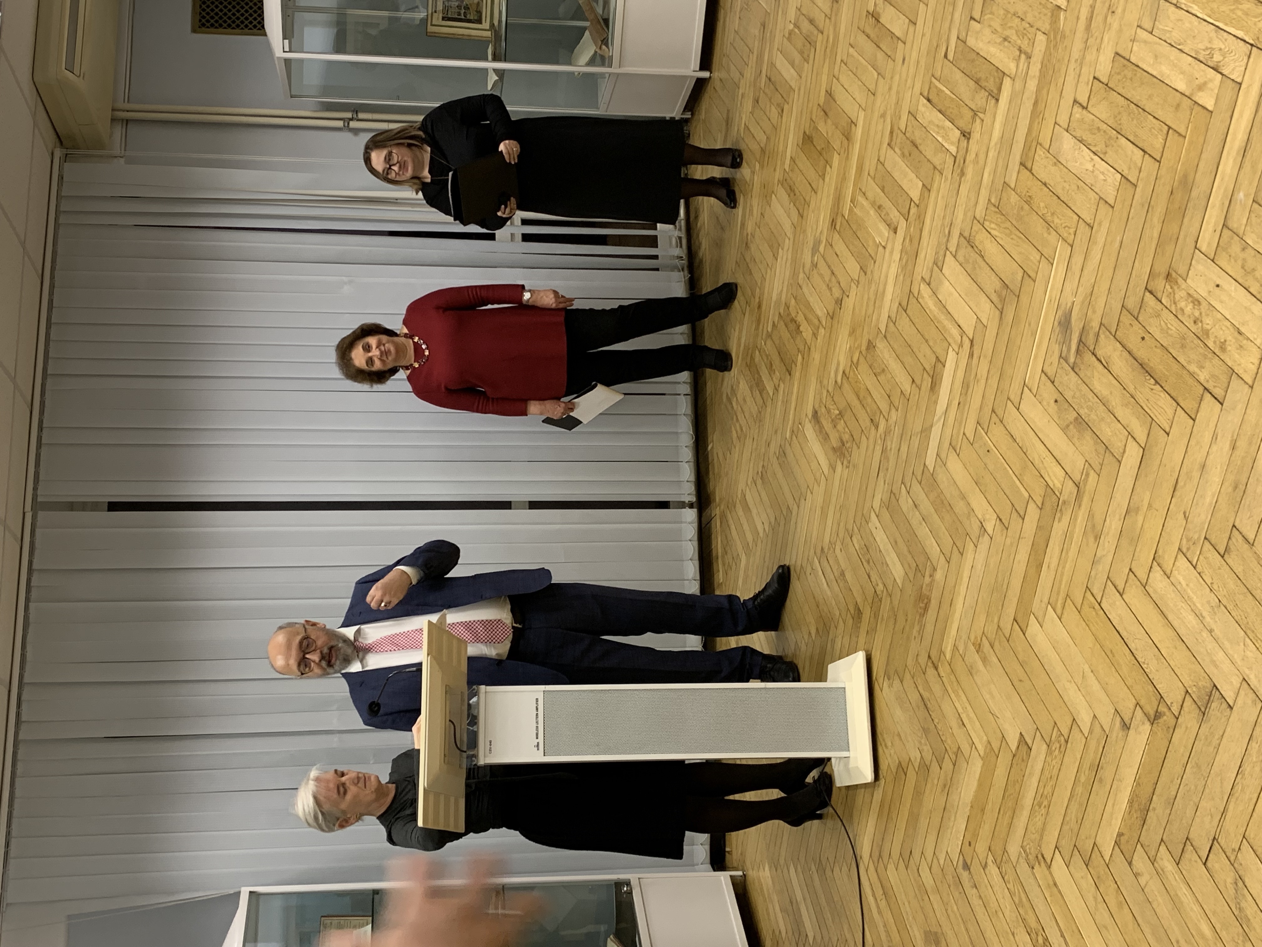 Ειδική μνεία έγινε στο έργο και την προσφορά του εκλιπόντος διακεκριμένου μελετητή της ελληνικής παλαιογραφίας και βυζαντινολογίας, Μπορίς Λβόβιτς Φόνκιτς, του οποίου η απουσία επισημάνθηκε από όλους με ιδιαίτερη συγκίνηση. «Τον τιμούμε απόψε και του αφιερώνουμε αυτήν την έκθεση», ανέφερε η πρέσβυς της Ελλάδος.