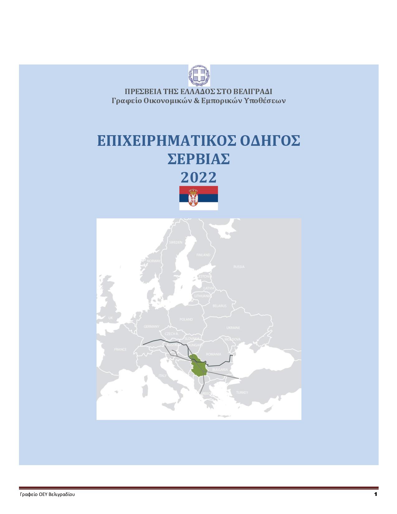 Βρείτε στον παρακάτω σύνδεσμο, τον Επιχειρηματικό Οδηγό Σερβίας (2021-2022) του Γραφείου Οικονομικών και Εμπορικών Υποθέσεων της Πρεσβείας της Ελλάδας στο Βελιγράδι. Απευθύνεται σε Έλληνες επιχειρηματίες, δυνητικούς εξαγωγείς ή επενδυτές, που ενδιαφέρονται για τη σερβική αγορά.