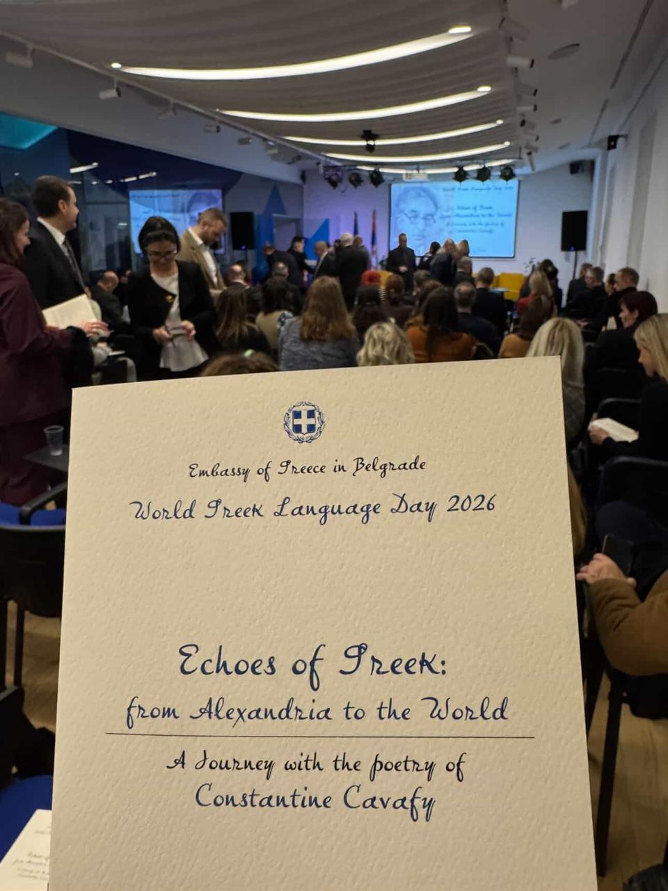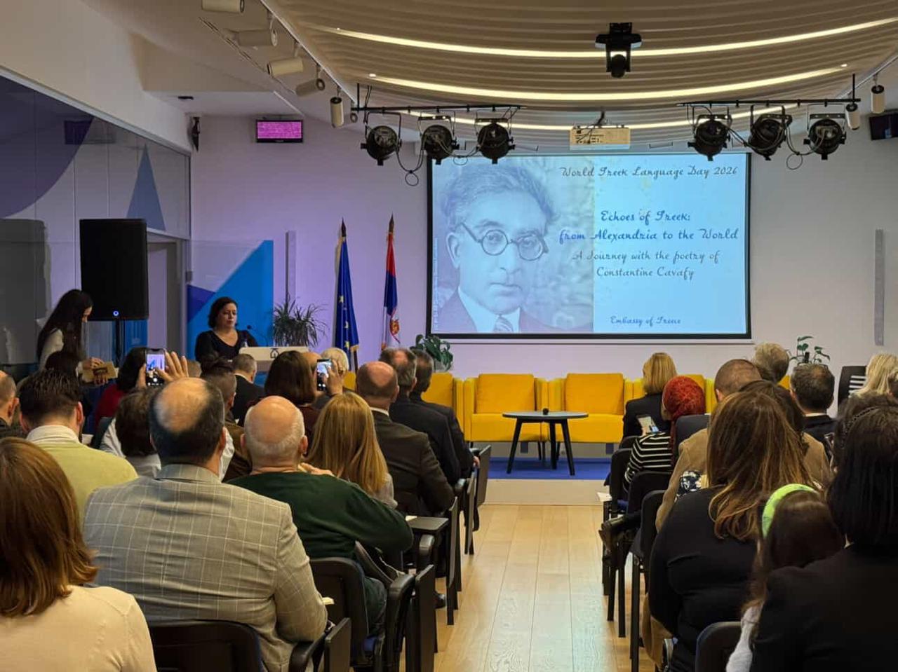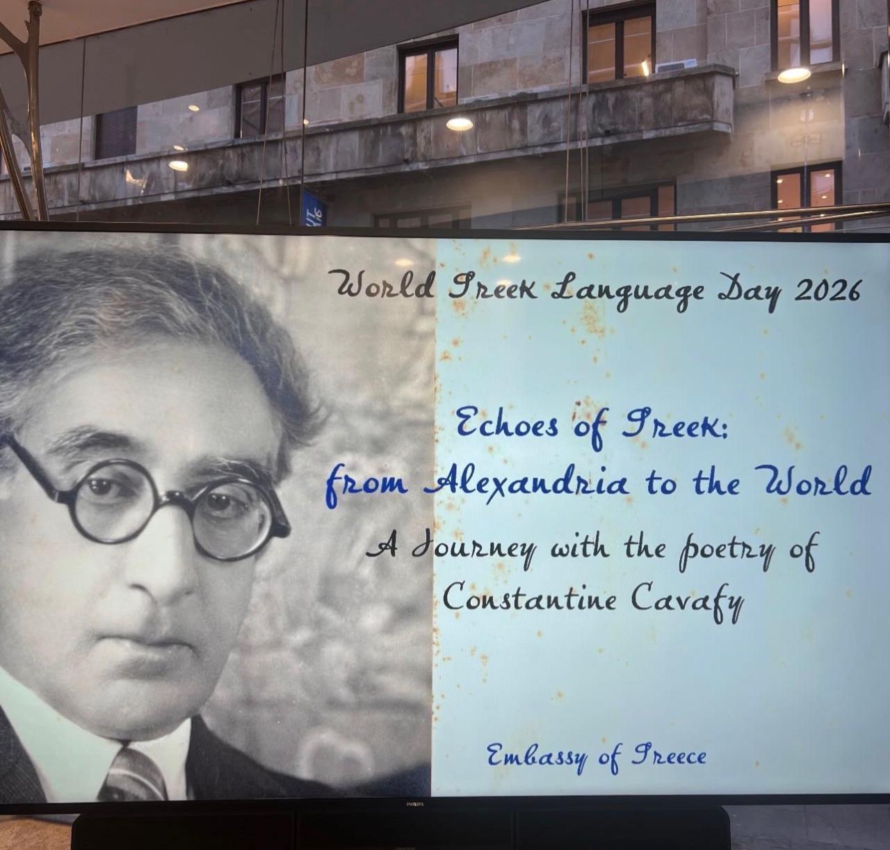 Поводом Светског дана грчког језика, Амбасада Грчке у Београду организовала је 9. фебруара, у Европској кући, посебно вече поезије посвећено делу Константина П. Кавафија, универзалног песника грчког језика.