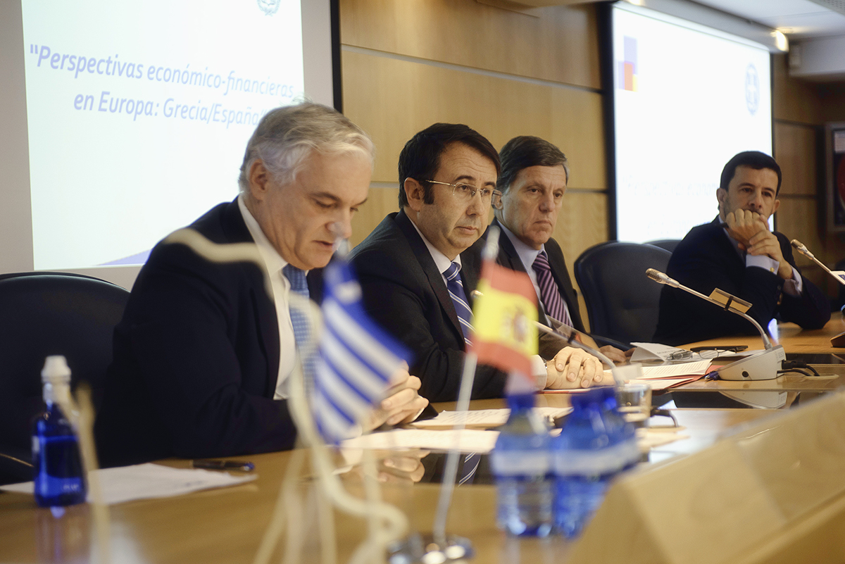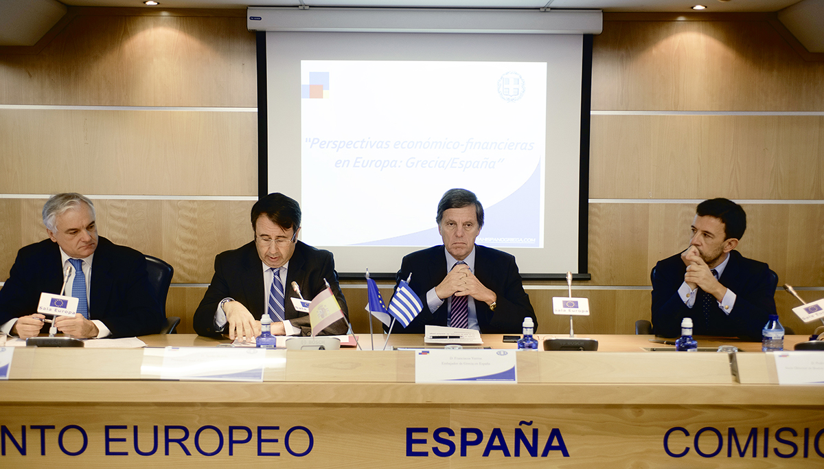 Durante una jornada celebrada en el anfiteátro de la Representación del la Comisión Europea en España, el martes 2 de diciembre, se presentaron las perspectivas económico-financieras en Europa con enfoque en Grecia y España. El acto organizó la Cámara de Comercio Hispanogriega en colaboración con la Embajada de Grecia en España.