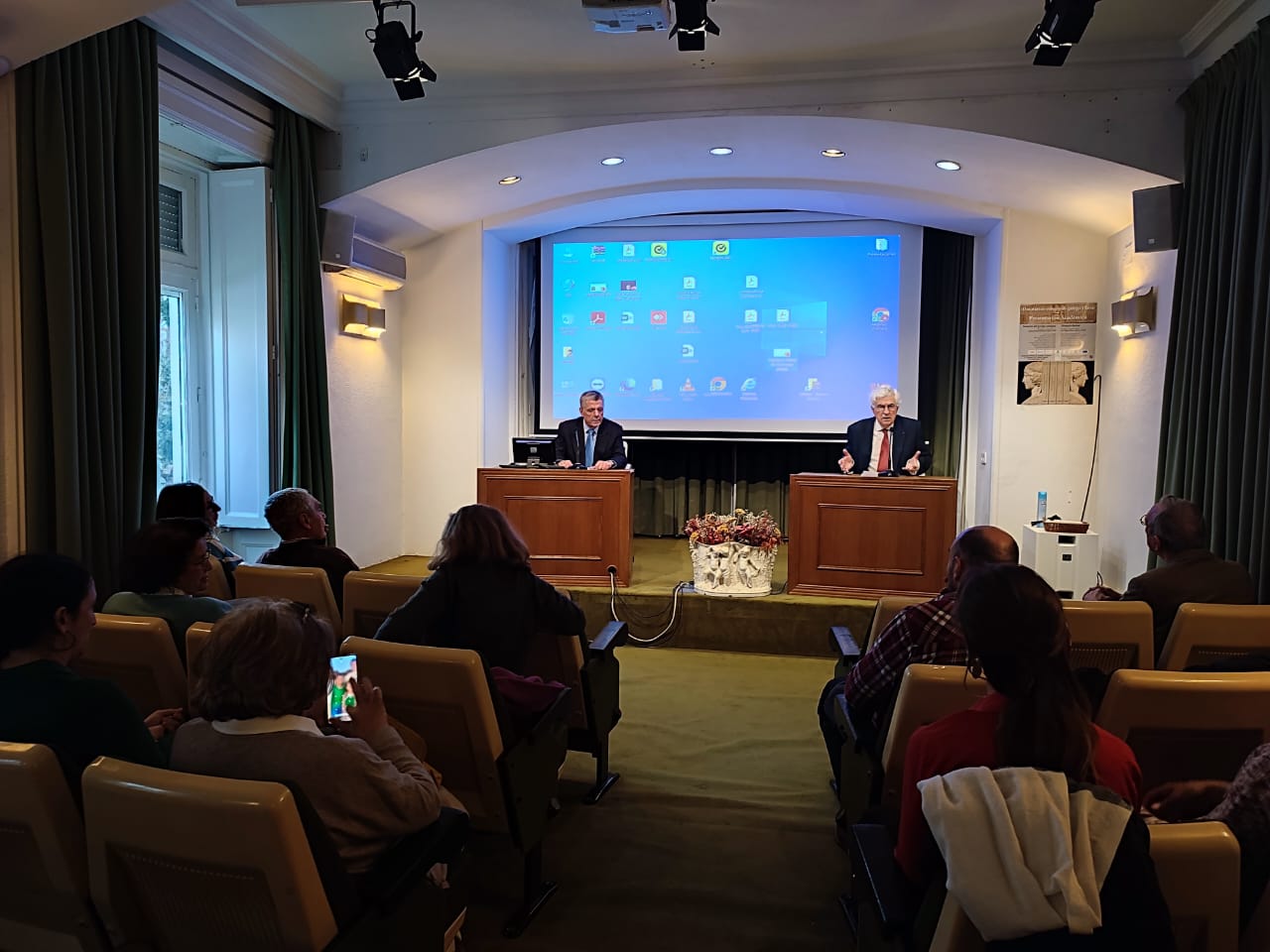 Κατά την έναρξη της εκδήλωσης, ο Πρέσβυς της Ελλάδας στην Ισπανία, κ. Ηλίας Φωτόπουλος, απηύθυνε σύντομο χαιρετισμό στους παρευρισκόμενους, υπογραμμίζοντας, μεταξύ άλλων, το χαρακτηριστικό της συνέχειας της ελληνικής γλώσσας, ενός γλωσσικού συστήματος που από την αρχαιότητα μέχρι σήμερα εμπλουτίζει την παγκόσμια επιστήμη και πολιτισμό, ενισχύει την ανάπτυξη της κριτικής σκέψης και χρησιμεύει ως εργαλείο επικοινωνίας των πλέον θεμελιωδών ανθρωπίνων εννοιών και ιδανικών.