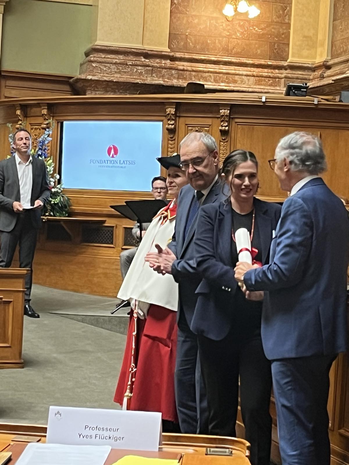 The ceremony of the annual Swiss Scientific Award of the Latsis Foundation, was held at the Swiss Federal Assembly, on November 6, in the presence of the Vice President of the Swiss Federal Council and Minister of Economy, Mr. Parmelin. This year's laureate was the Swiss Legal Prof. Dr. Saskia Stucki.