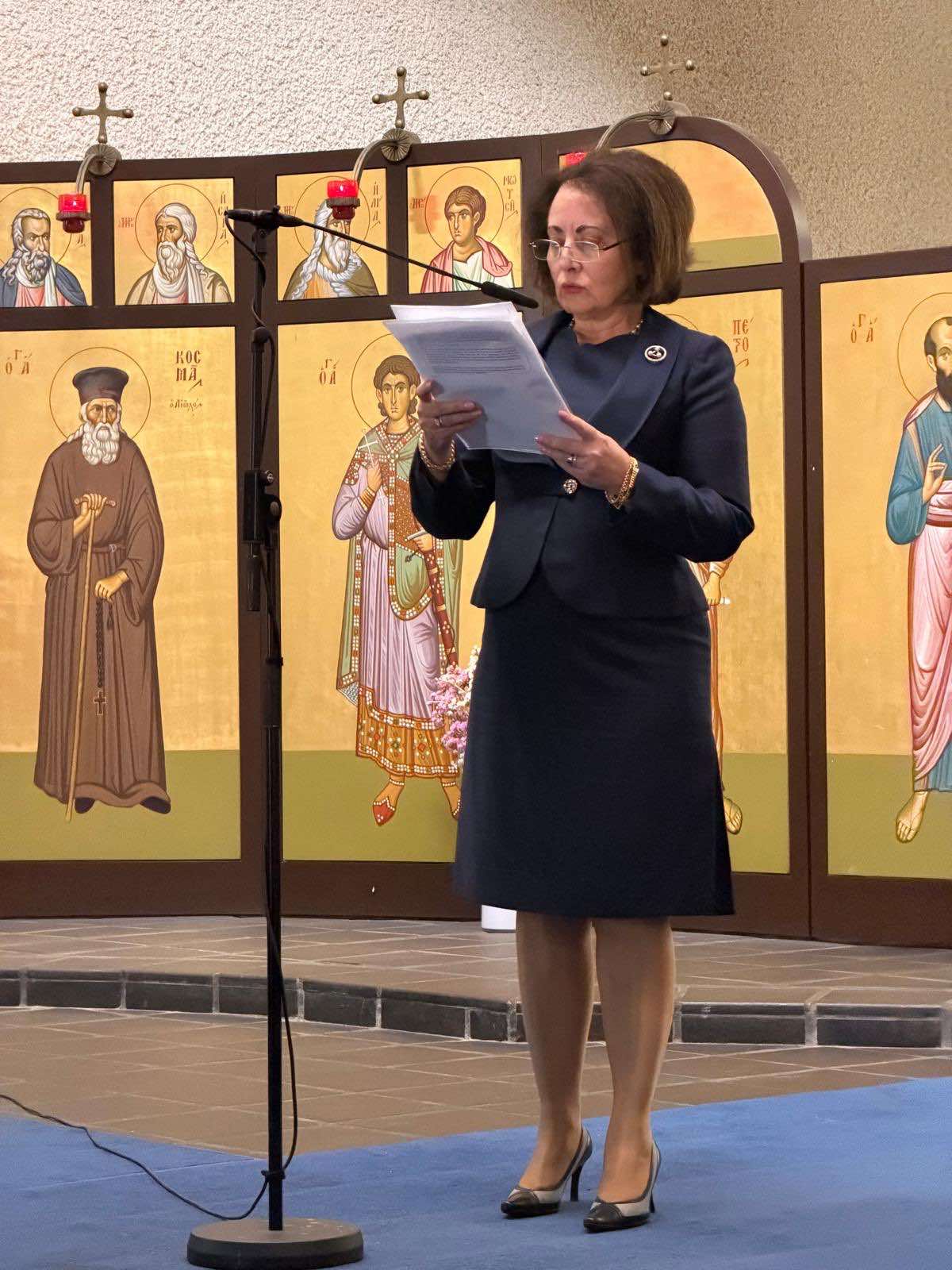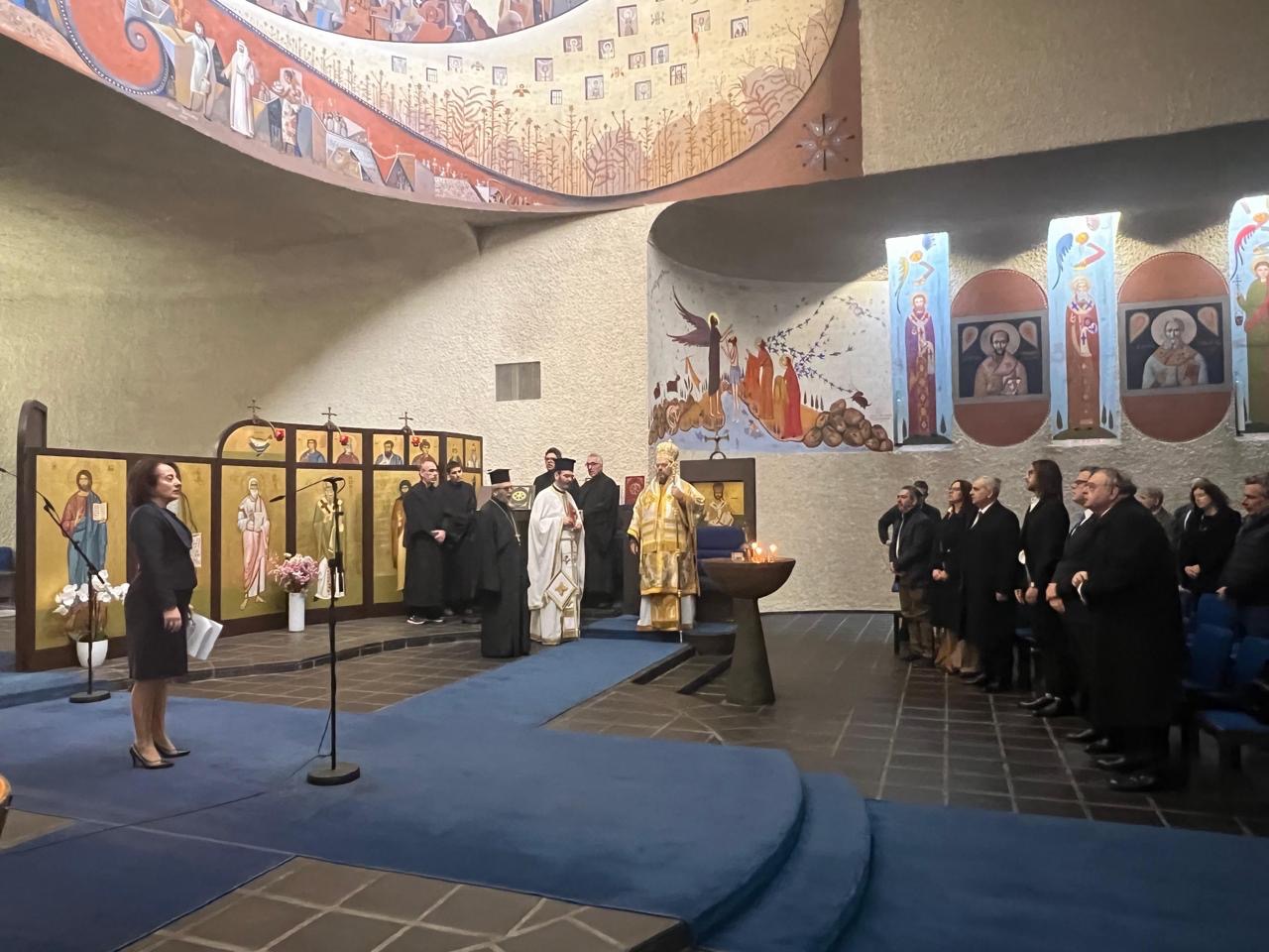Doxology at the Holy Church of the Apostle of the Nations Paul in Geneva, on March 29, for the celebration of the National Day of March 25, officiated by His Eminence Metropolitan of Switzerland, Mr. Maximos. The Ambassador of Greece to Switzerland, Mrs. Ekaterini Simopoulou, delivered the commemorative speech and read the message of the President of the Hellenic Republic, Mr. Konstantinos Tasoulas, to the Greek diaspora.