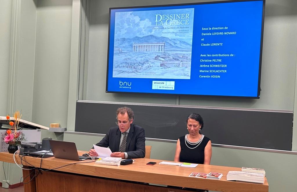 In an event organized at the University of Fribourg on 10.10.2024 by the Association of Friends of the Andritsaina Library, in collaboration with the University of Fribourg and the University of Strasbourg, the Professors Mrs. Daniela Lefevre-Novaro and Mr. Claude Lorentz presented their book "Dessiner la Grece. L'oeil et la main de Carl Haller von Hallerstein" by University of Strasbourg.