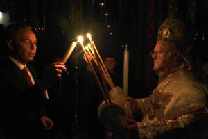Τέλος, στον Πατριαρχικό Ναό στο Φανάρι, όπου χοροστάτησε η Α.Θ.Π. ο Οικουμενικός Πατριάρχης Βαρθολομαίος, ο κ. Κούτρας παρέστη στην Ανάσταση το βράδυ του Μεγάλου Σαββάτου ενώ κατά τον Μεγάλο Εσπερινό της Αγάπης το πρωί της Κυριακής του Πάσχα, προσήλθε στον Πατριαρχικό Ναό ο Πρέσβυς της Ελλάδος στην Άγκυρα κ. Θεόδωρος Μπιζάκης.