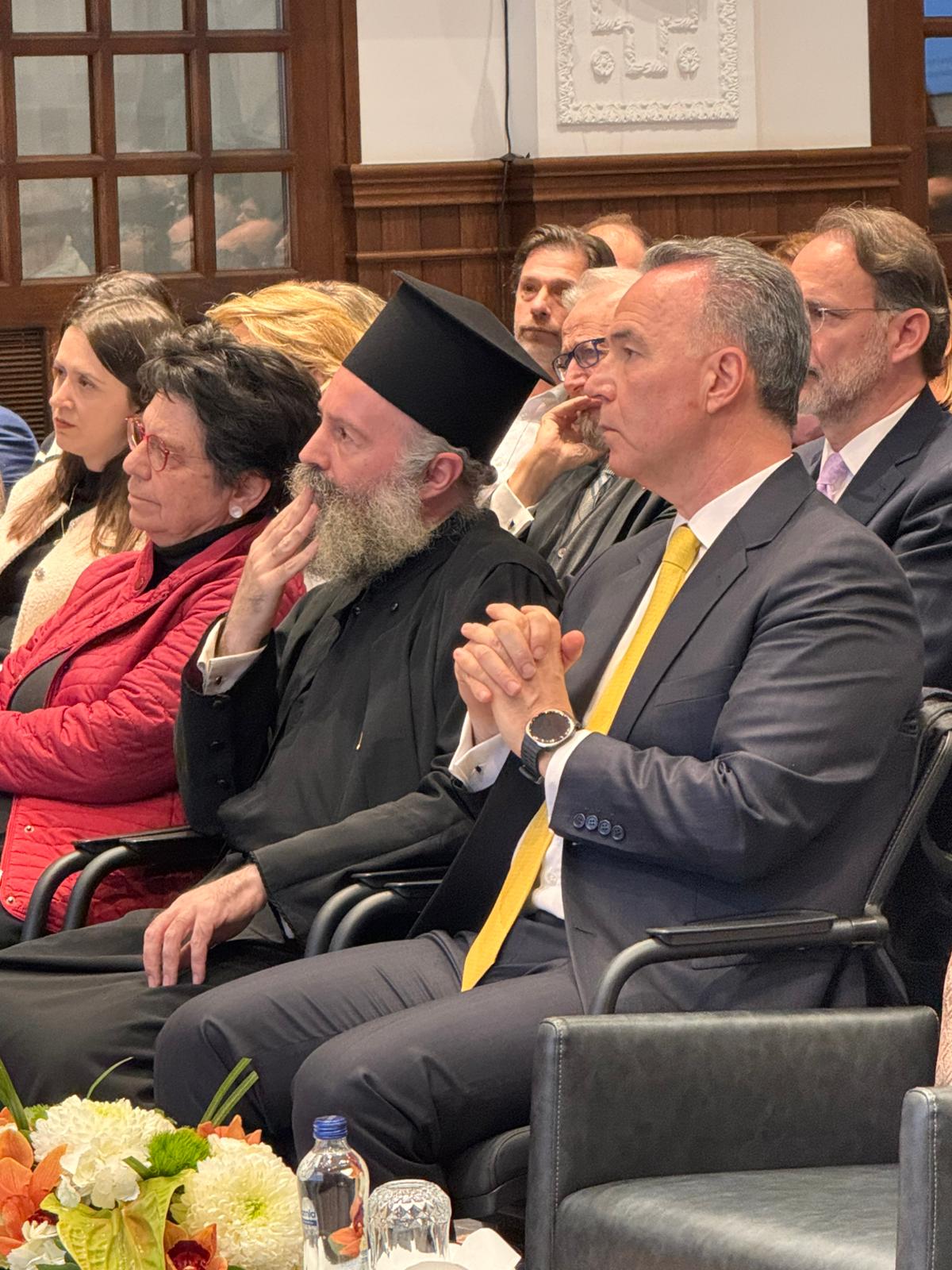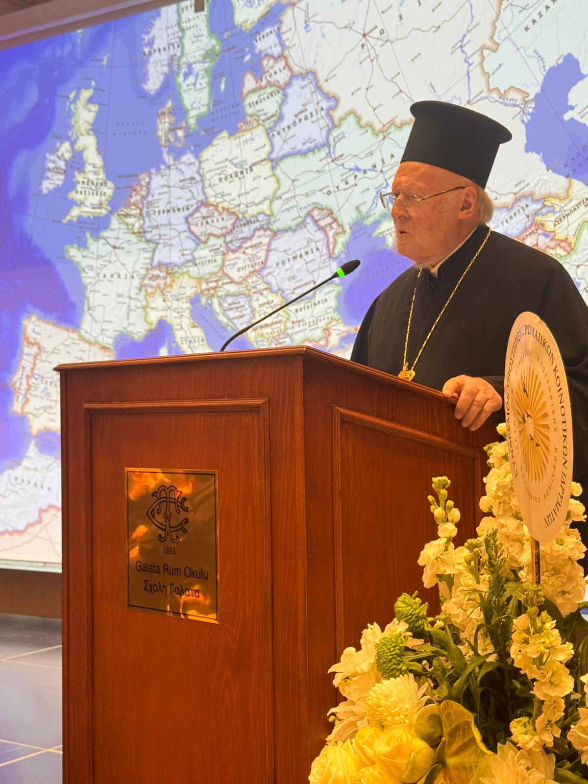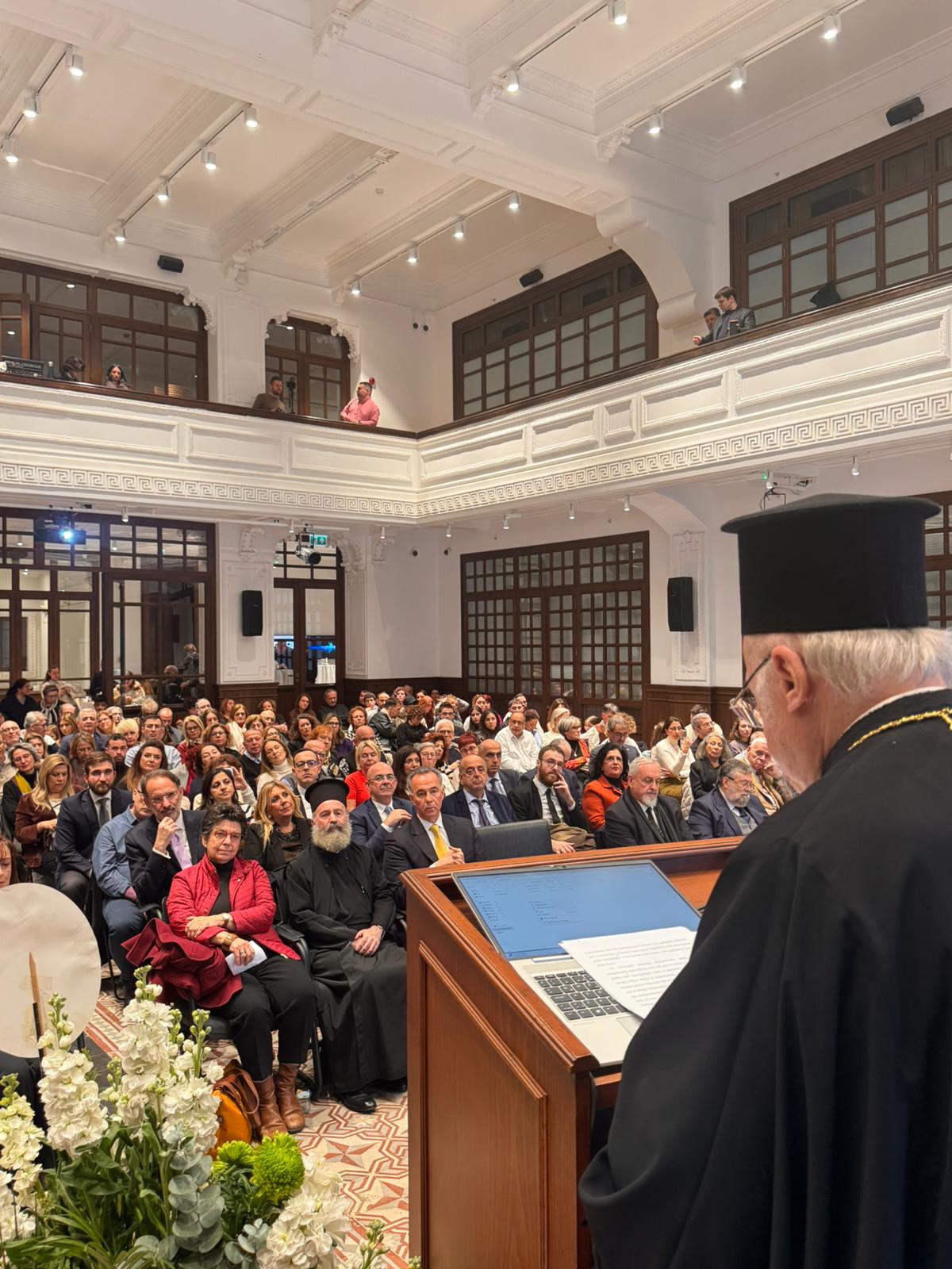 Λαμβάνοντας το λόγο ο Οικουμενικός Πατριάρχης κ. Βαρθολομαίος, συνεχάρη τον κύριο Κούτρα για την πρωτοβουλία της εκδήλωσης, και αναφέρθηκε στη σημασία της ελληνικής γλώσσας, της γλώσσας του Ομήρου και της Σαπφούς, των φιλοσόφων και των τραγικών, της Καινής Διαθήκης και των Πατέρων της Εκκλησίας, της Θείας Λειτουργίας και της υμνολογίας. «Τιμούμε τη μητρική γλώσσα του πνεύματος» η οποία προσέφερε πάμπολα και ανεκτίμητα στον παγκόσμιο πολιτισμό στα γράμματα και τις επιστήμες, επισήμανε χαρακτηριστικά ο Παναγιώτατος.